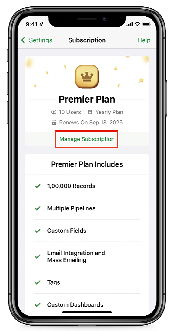 2. Go to Settings > Tap on the existing plan under the Subscription tab.