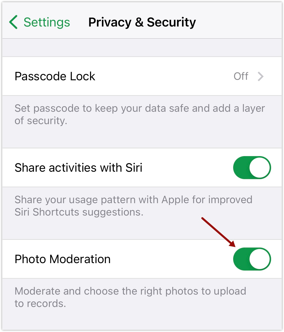 Photo moderation feature, on your Bigin Native app for iPhone, allows you to moderate and choose appropriate photos to upload to the records in Bigin. The feature operates strictly on the user’s device without any need for a network connection, thus ...