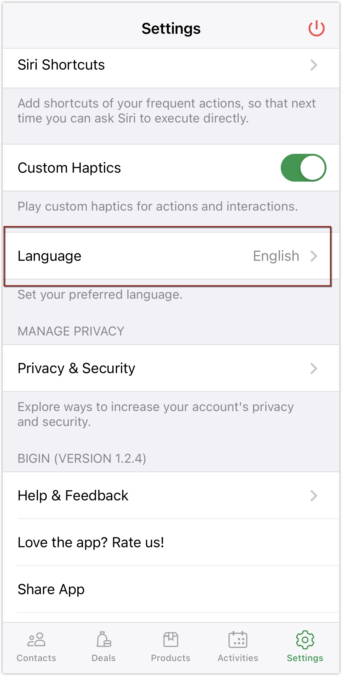 Set the Preferred Language | Online Help - Bigin by Zoho CRM