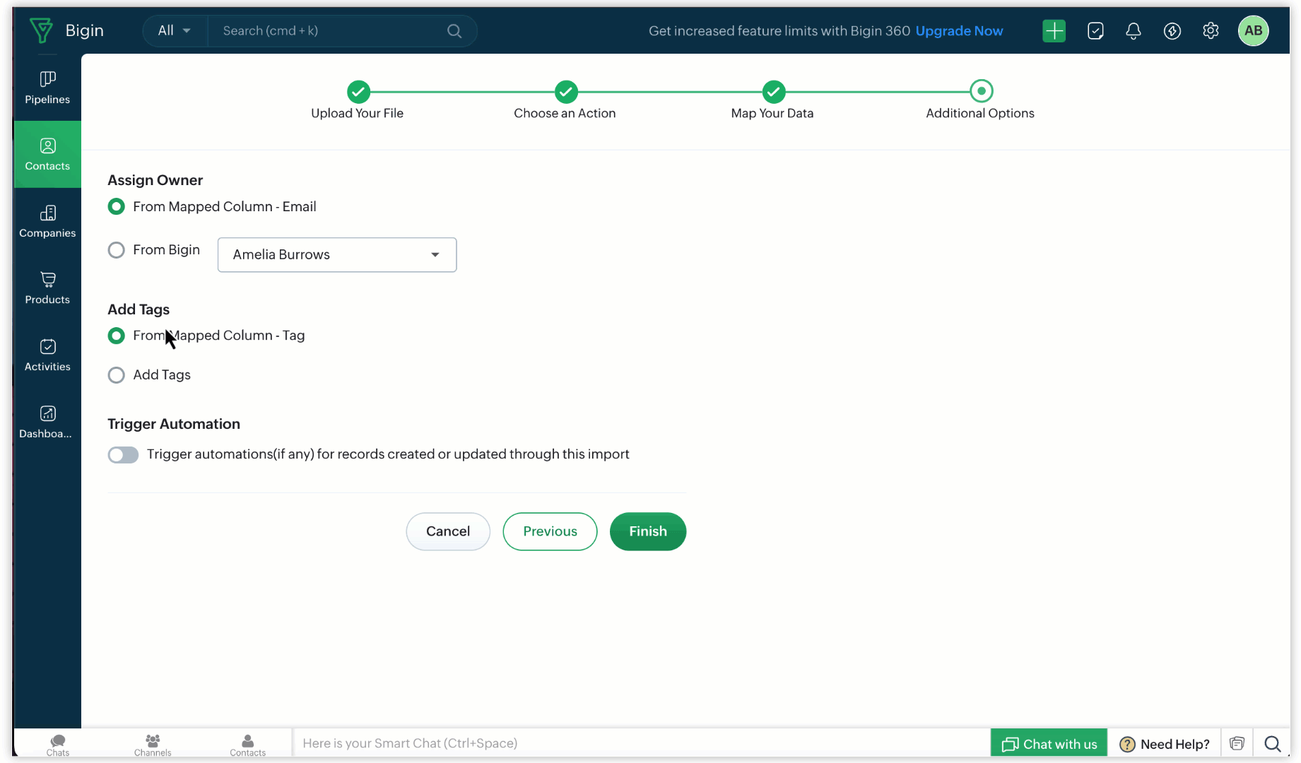 Or, you can add tags in the last stage of the import process using the Add Tags option. Here, the tags added will be common to all the records in the import file.