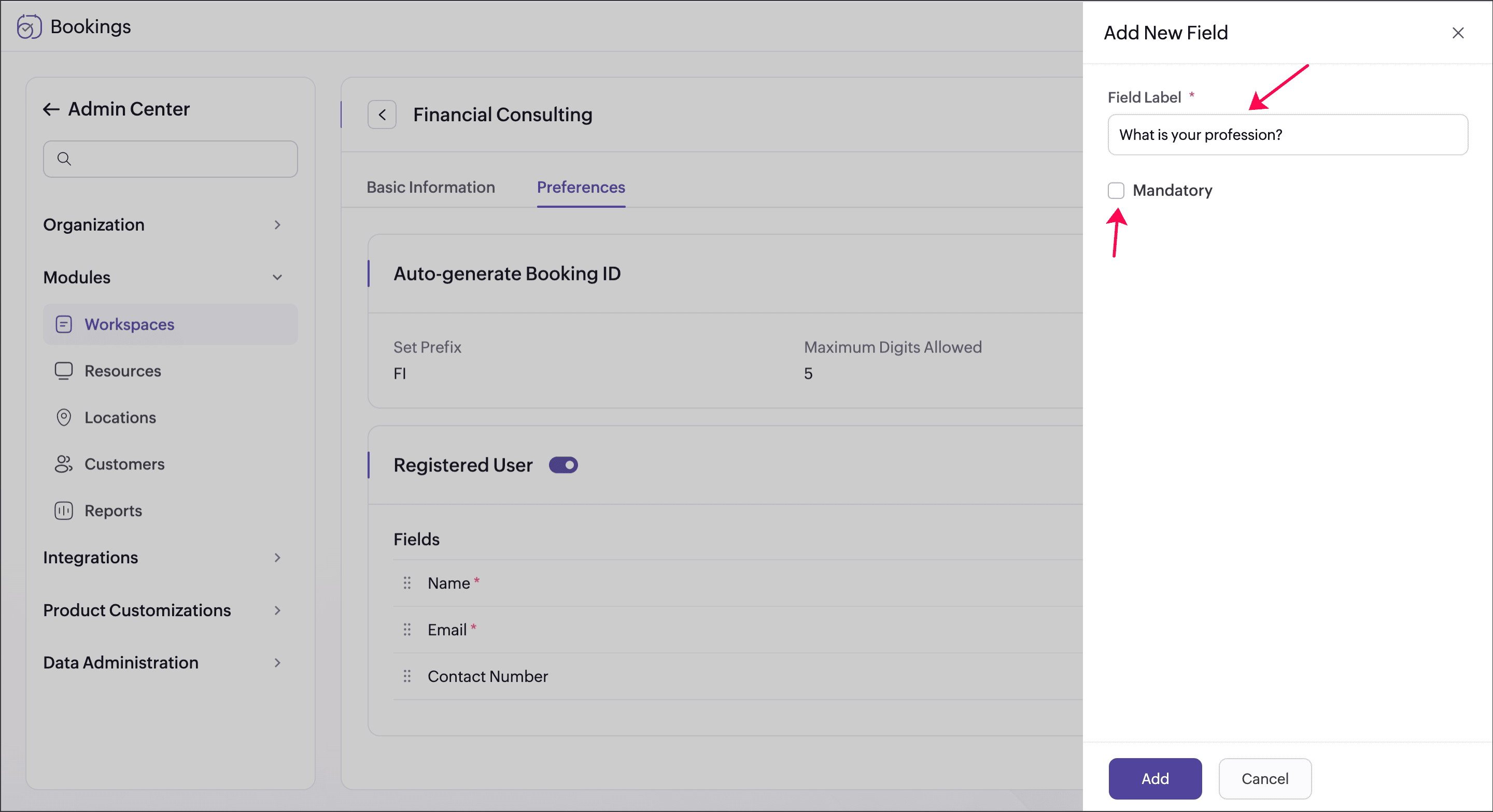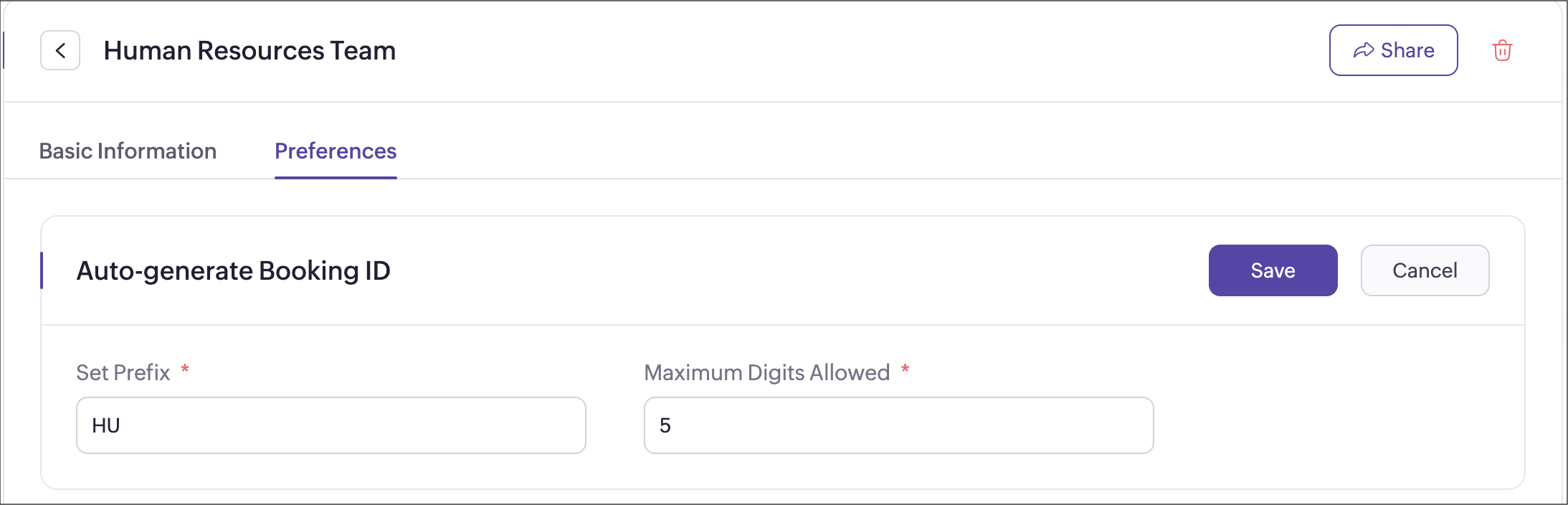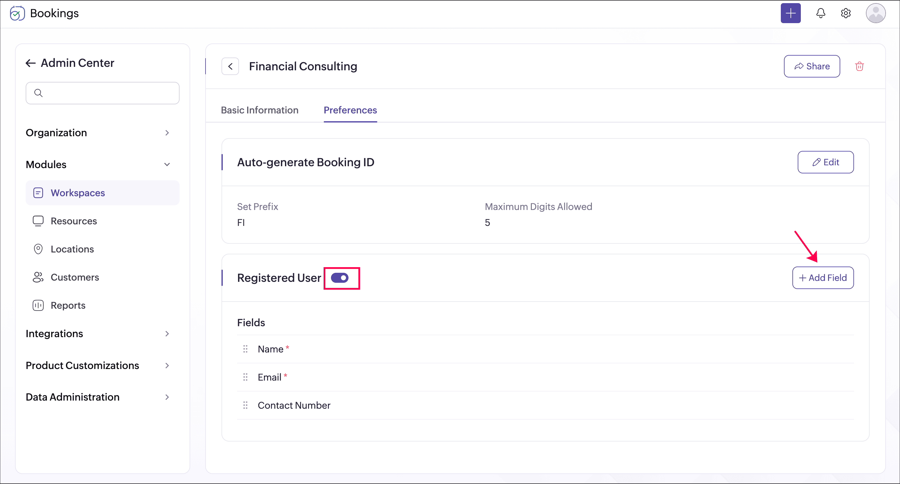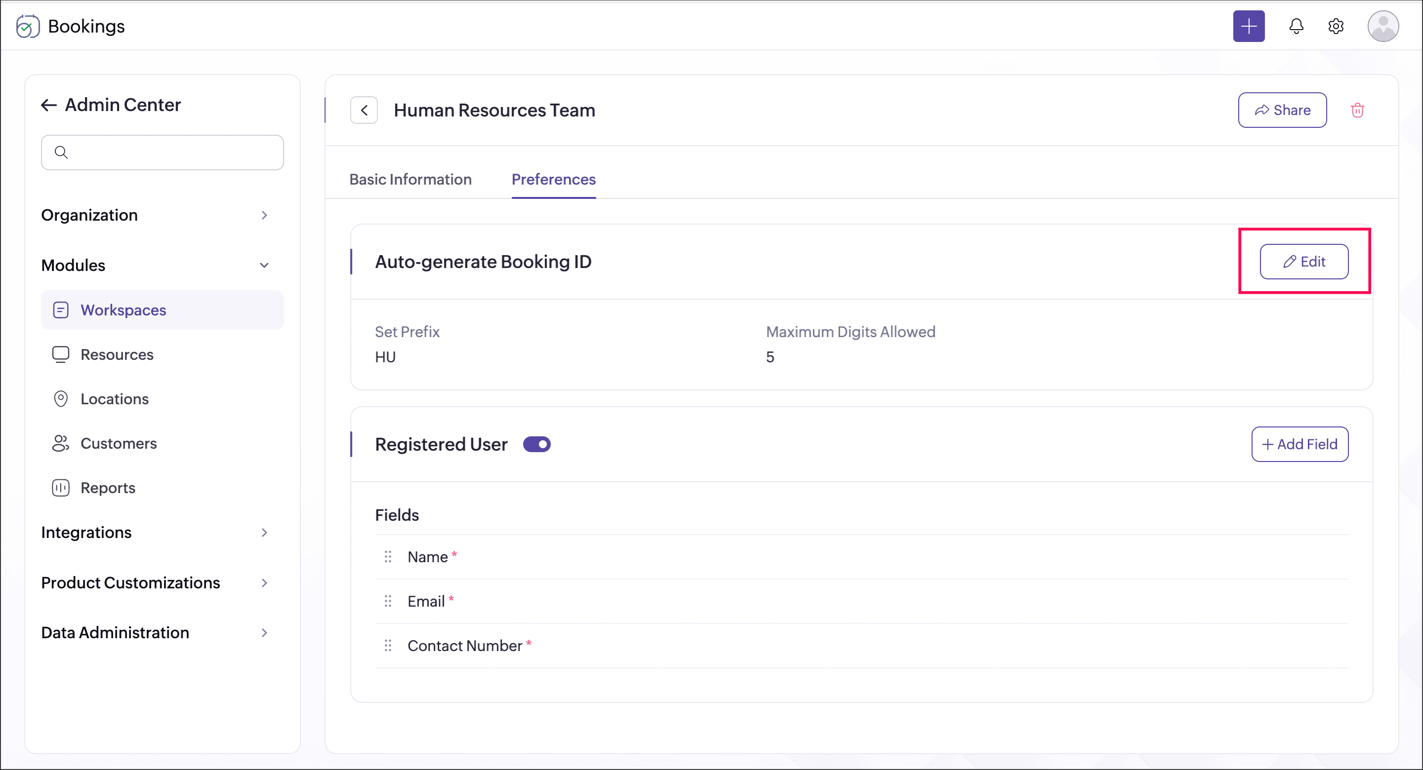 Alert: Deactivating a workspace will also deactivate all event types associated with it. Activating it back does not activate event types associated with it. You have to activate each event type manually.Booking ID is the unique ID generated for every appointment. You can customize the format that you want for the booking ID by setting a prefix and the number of digits in it.