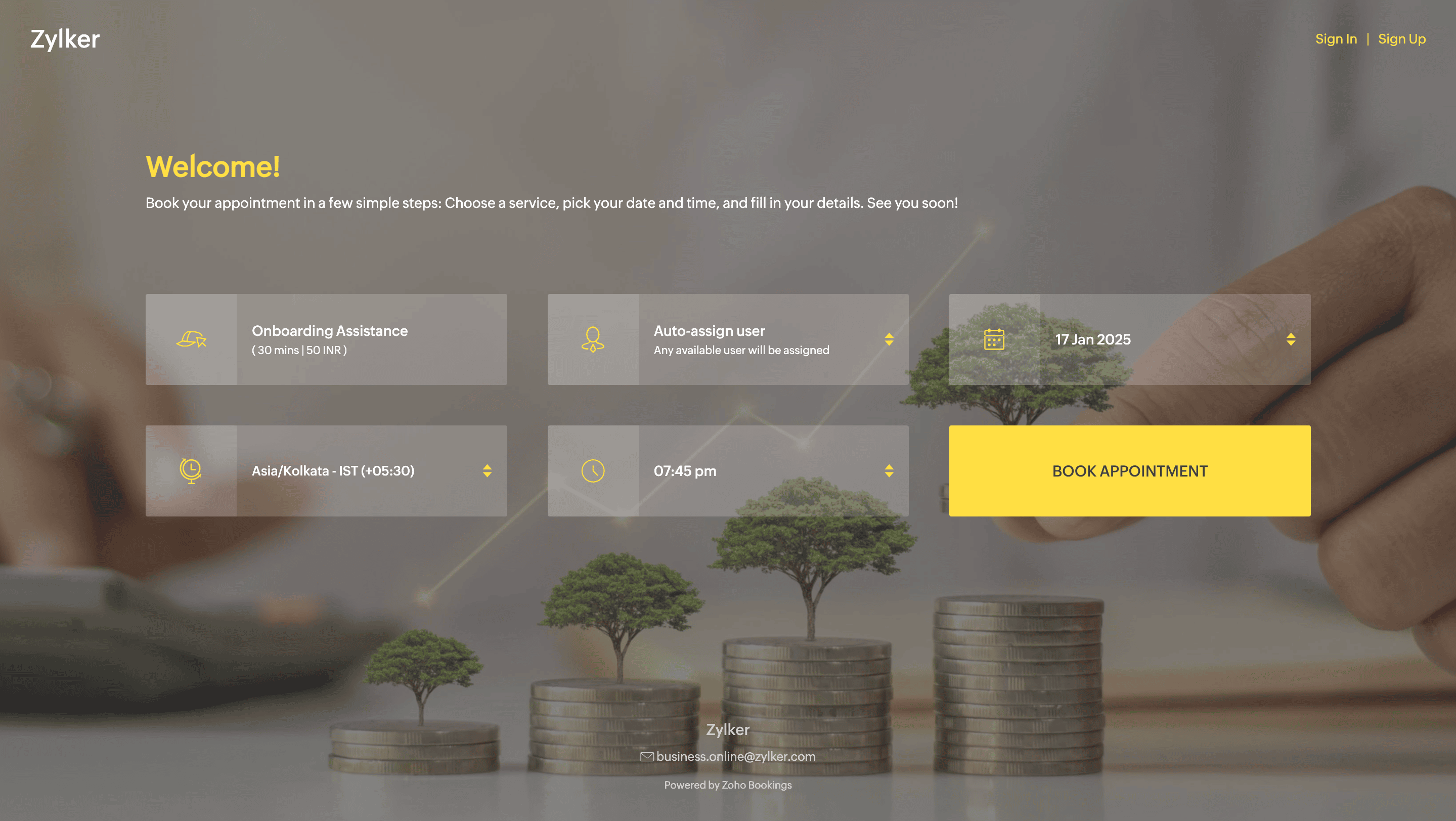 Zoho Bookings automatically converts the appointment times for customers who book appointments from a different time zone.