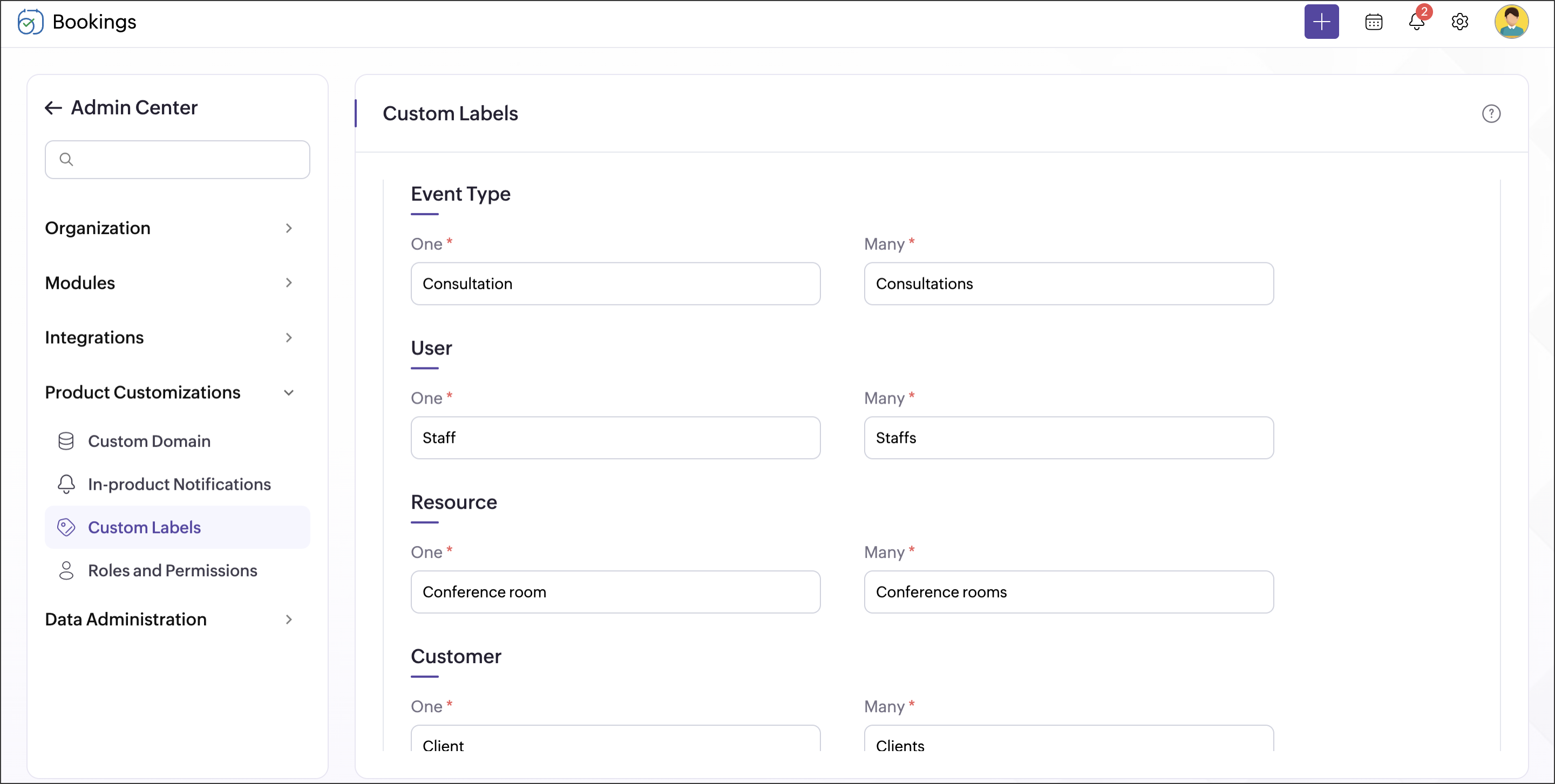 Note: This label gets applied to your entire Bookings org.This will also be shown on the booking page when the customer books an appointment.