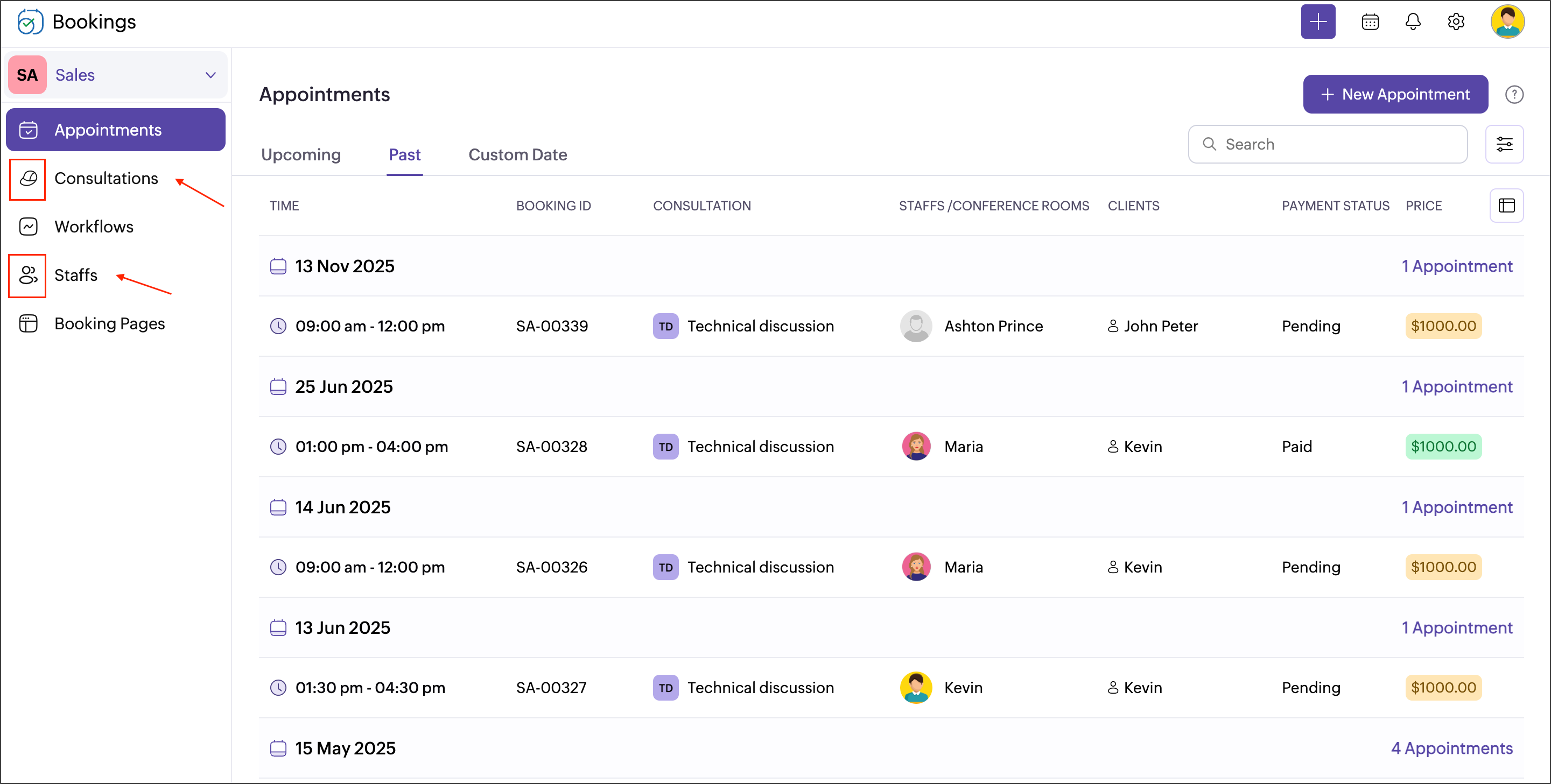 Now the options in your Bookings will show the customized labels and icons. Note that in the below picture, the following terms have changed.