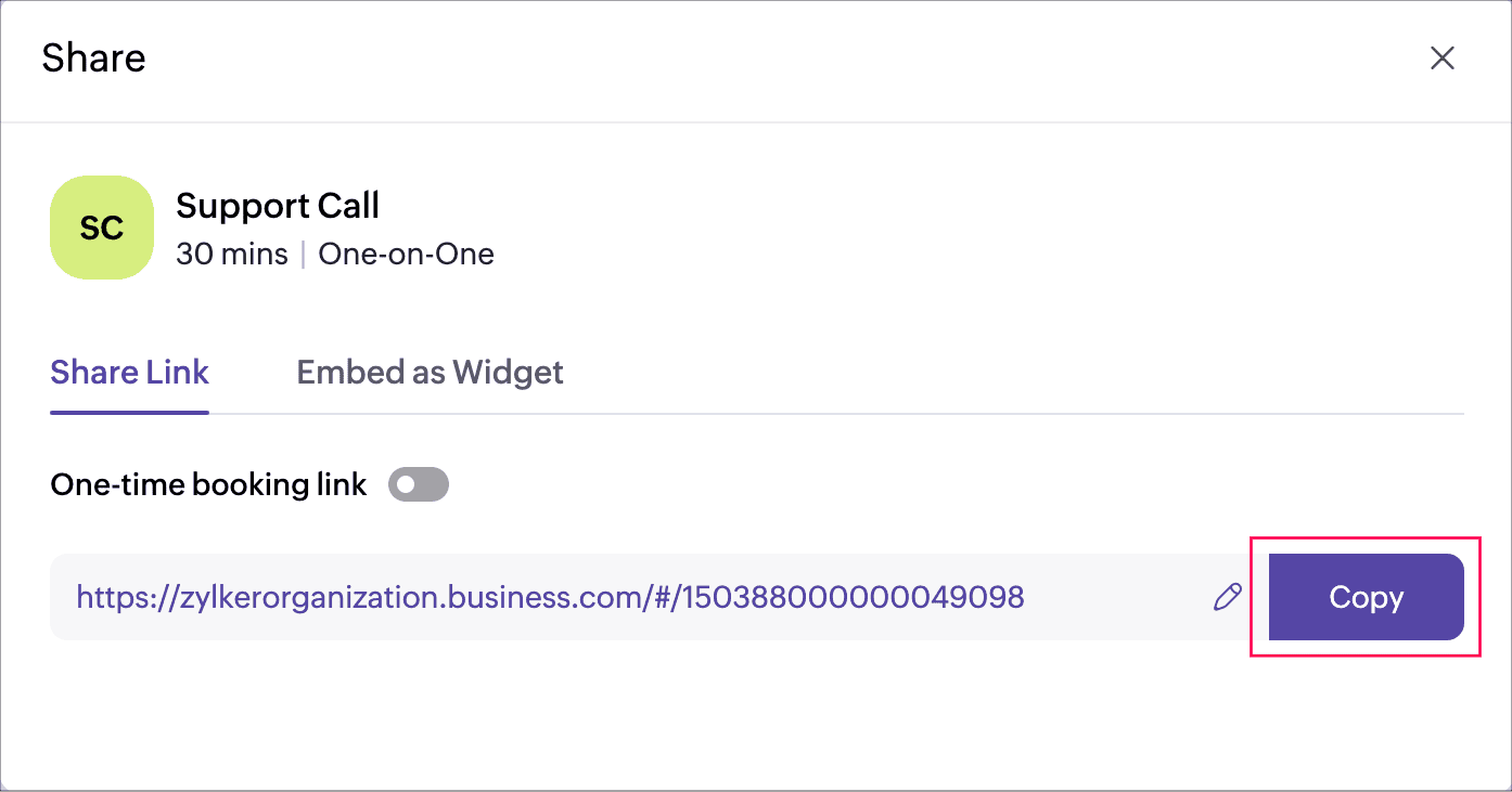 Info: The last segment of the booking link can be customized by clicking the edit icon.