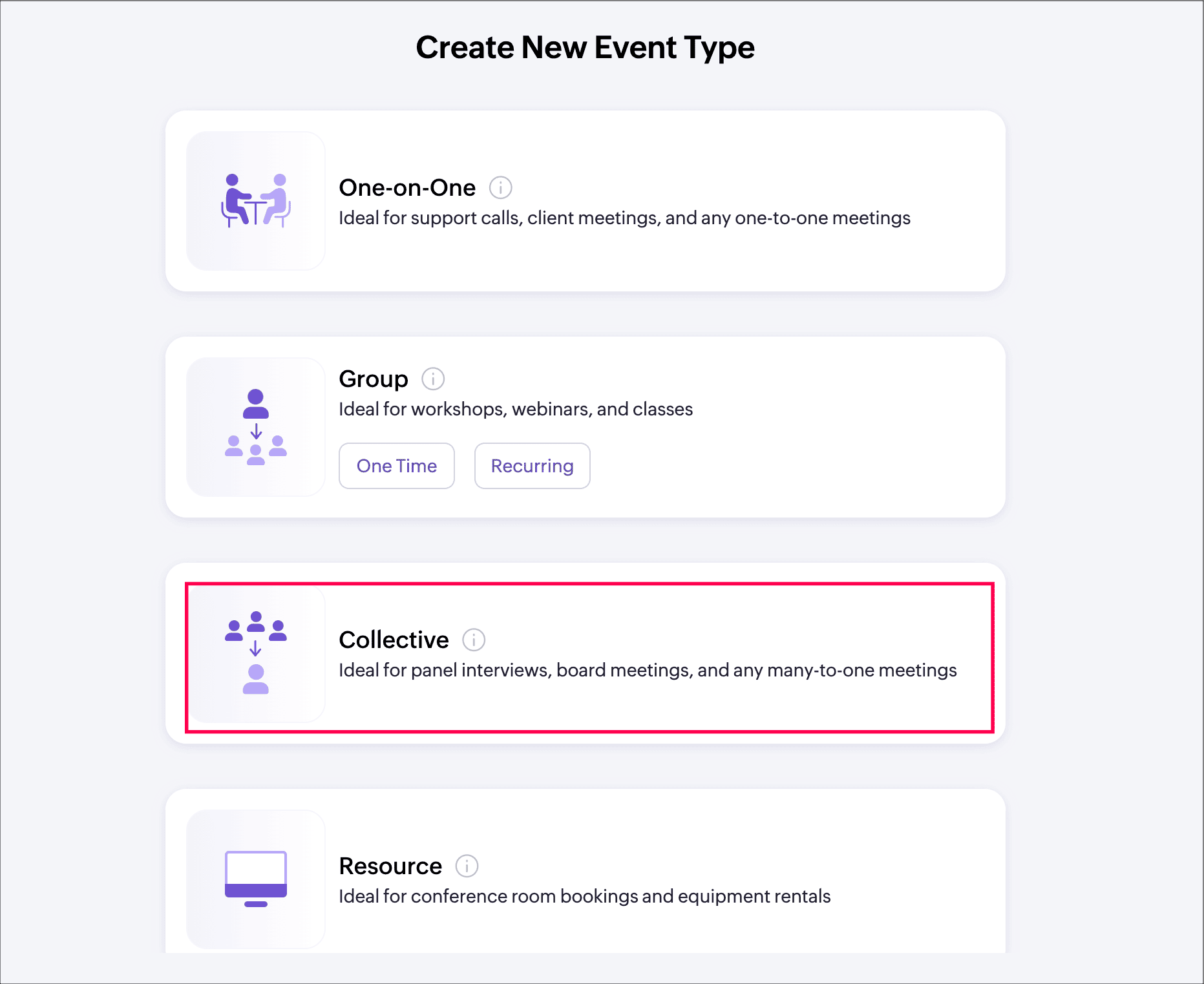 Collective event type is an appointment type between multiple hosts and a single participant. You can add multiple teams to the event type, and any one of the teams gets booked for the appointment.