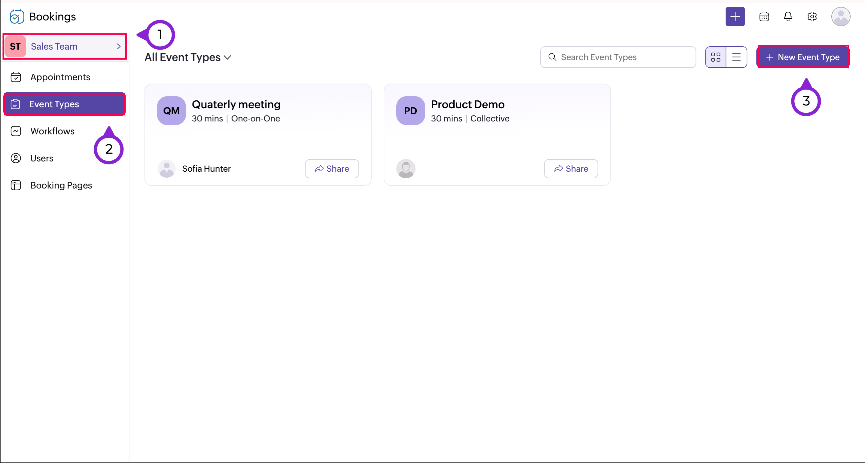 To create a collective booking event type, you'll have to:
