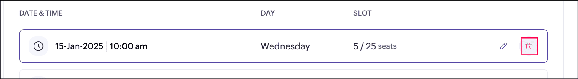 - To cancel a session, you can click the Cancel icon of the particular session.