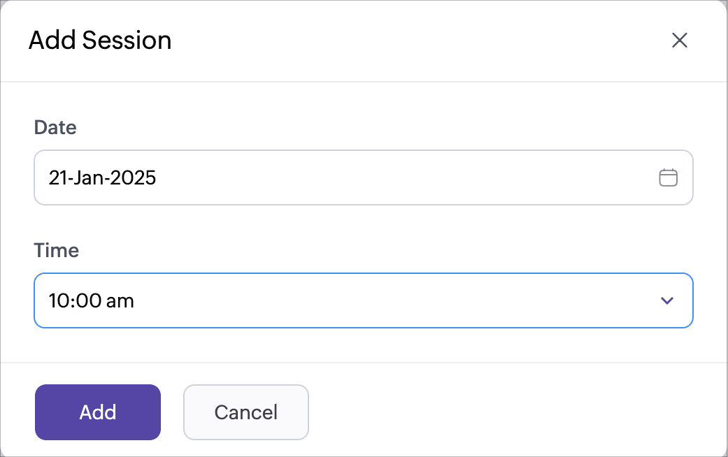 - Date: If you choose this, select the end date until which the session should be repeated in the next dropdown.