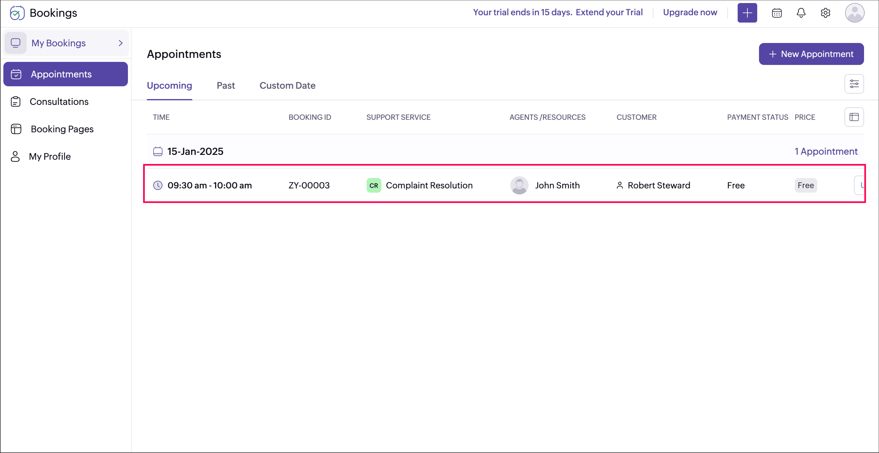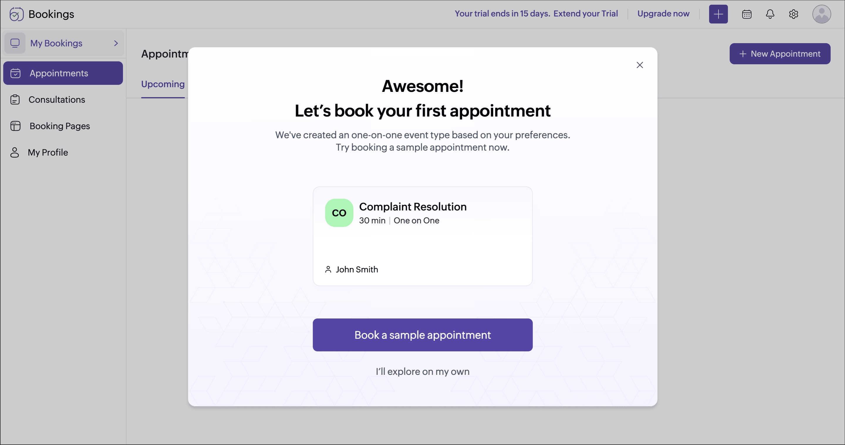 After confirmation, you will be navigated to Zoho Bookings home page.