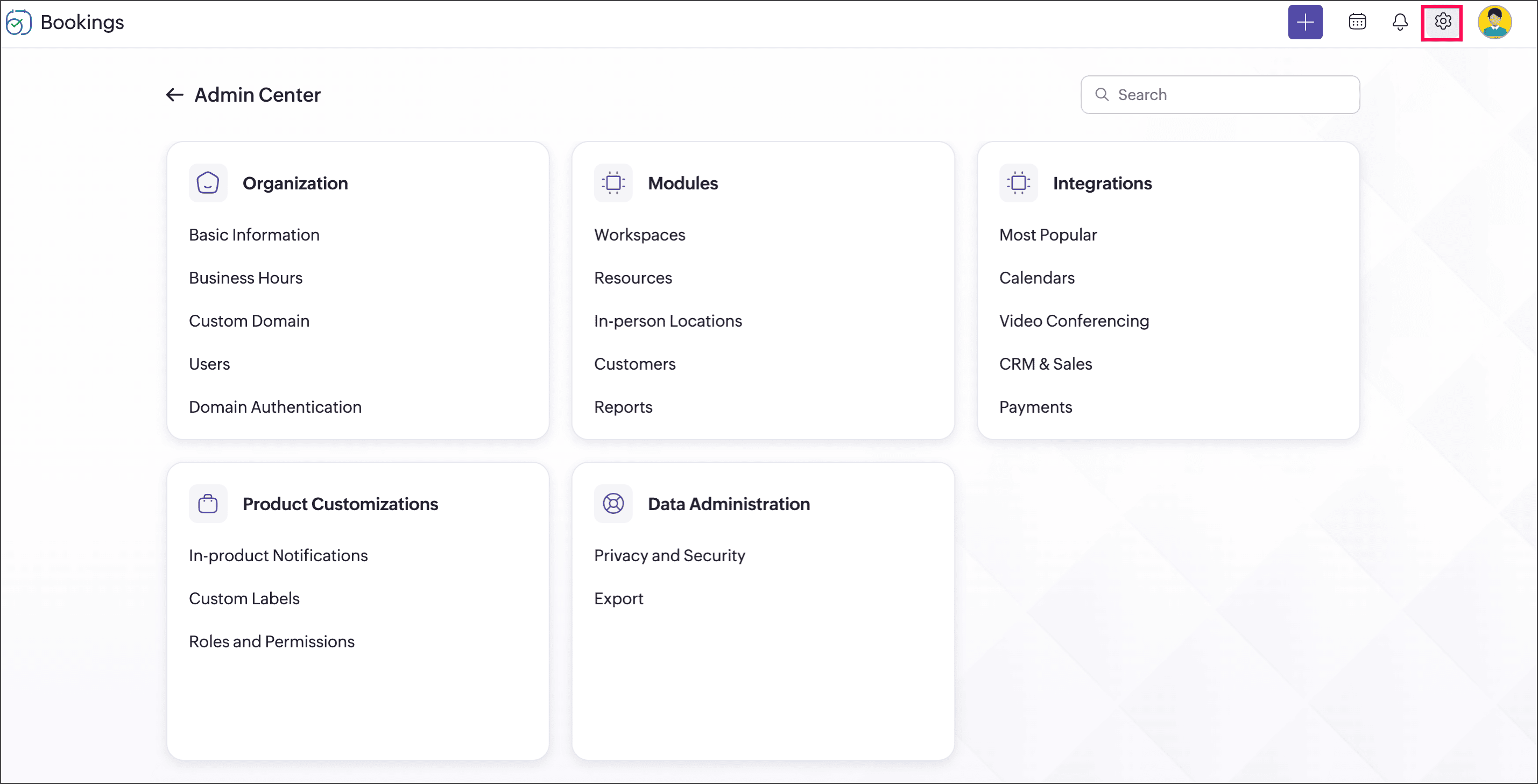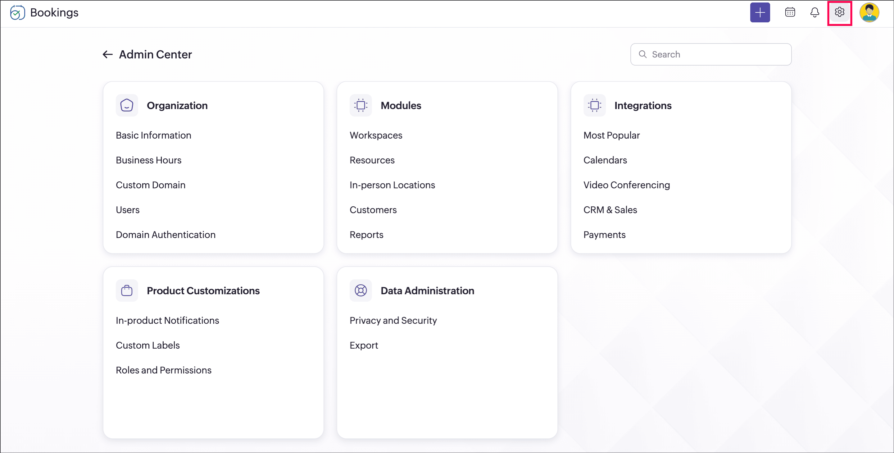 All modules, integrations, organization settings, and product customizations are now grouped under Setup. This setup applies at the account level and is not specific to individual workspaces.