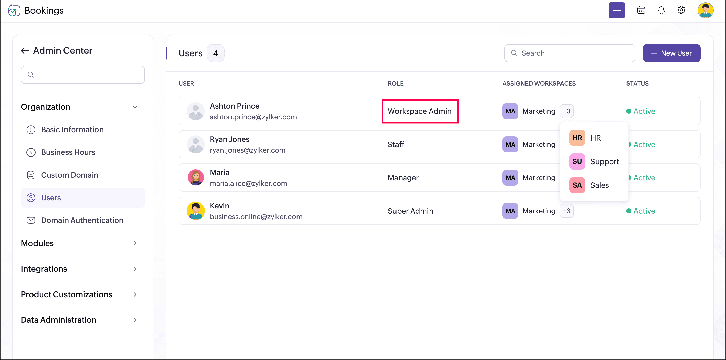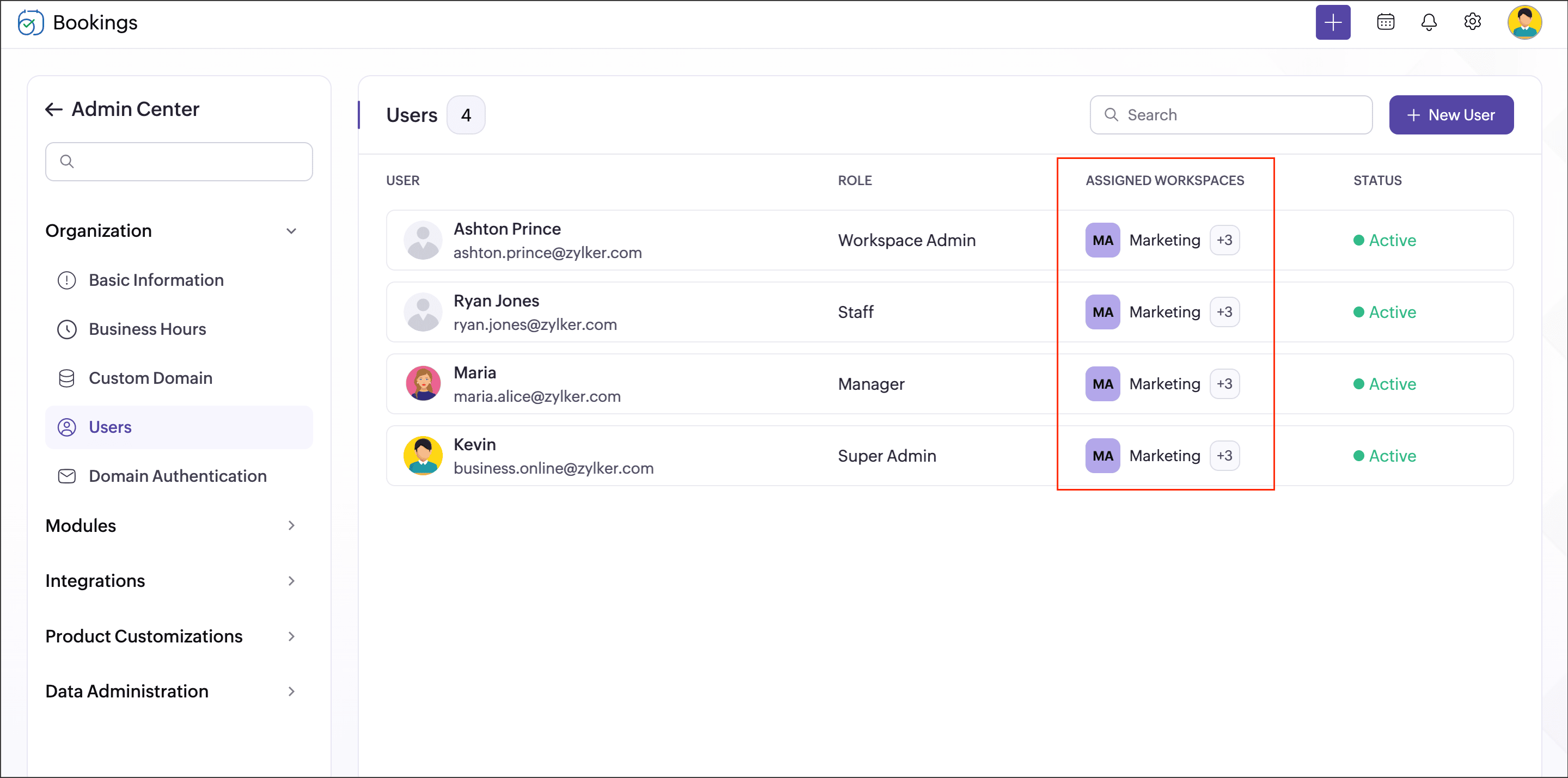 - Users can be assigned to workspaces