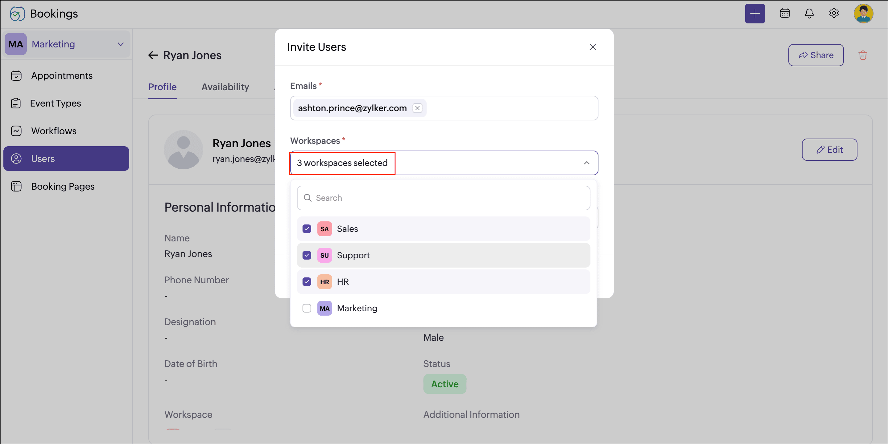 Note: Admins and super admins can access all workspaces.