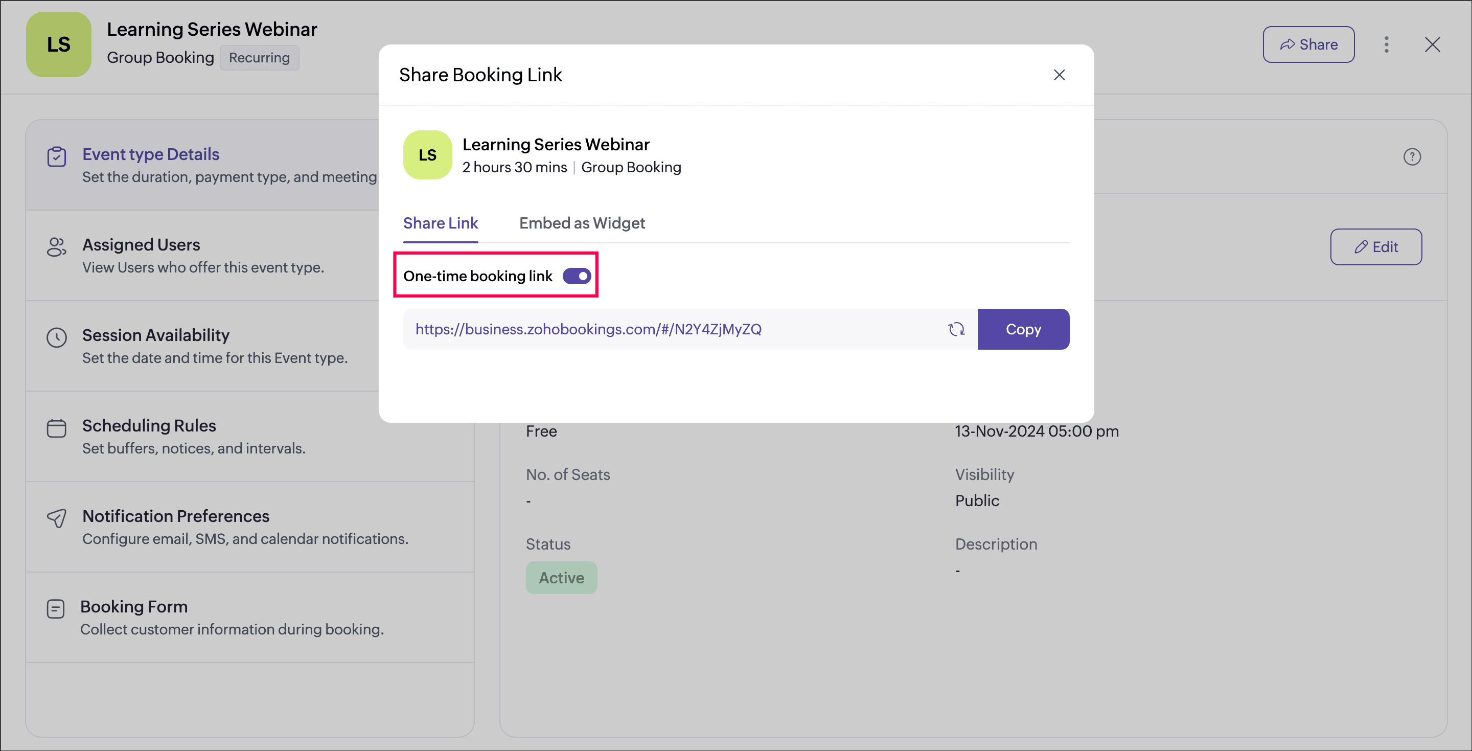 With the booking link you've shared before, your clients might book appointments without prior communication. To address this, you can now share a one-time booking link, which will expire after its first booking.