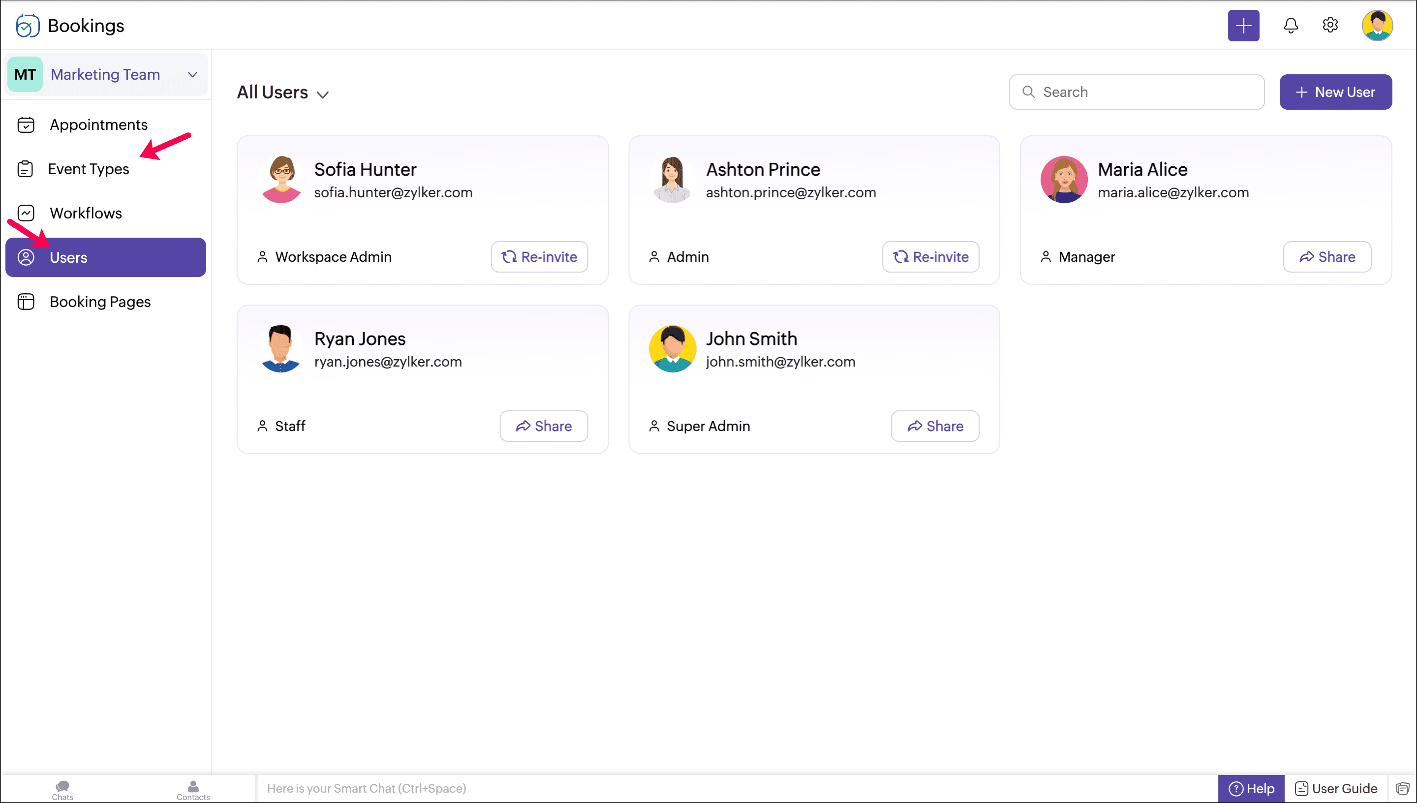 Staff, which was used to denote all Bookings roles, has now been renamed as Users, while the staff role is retained as Staff.