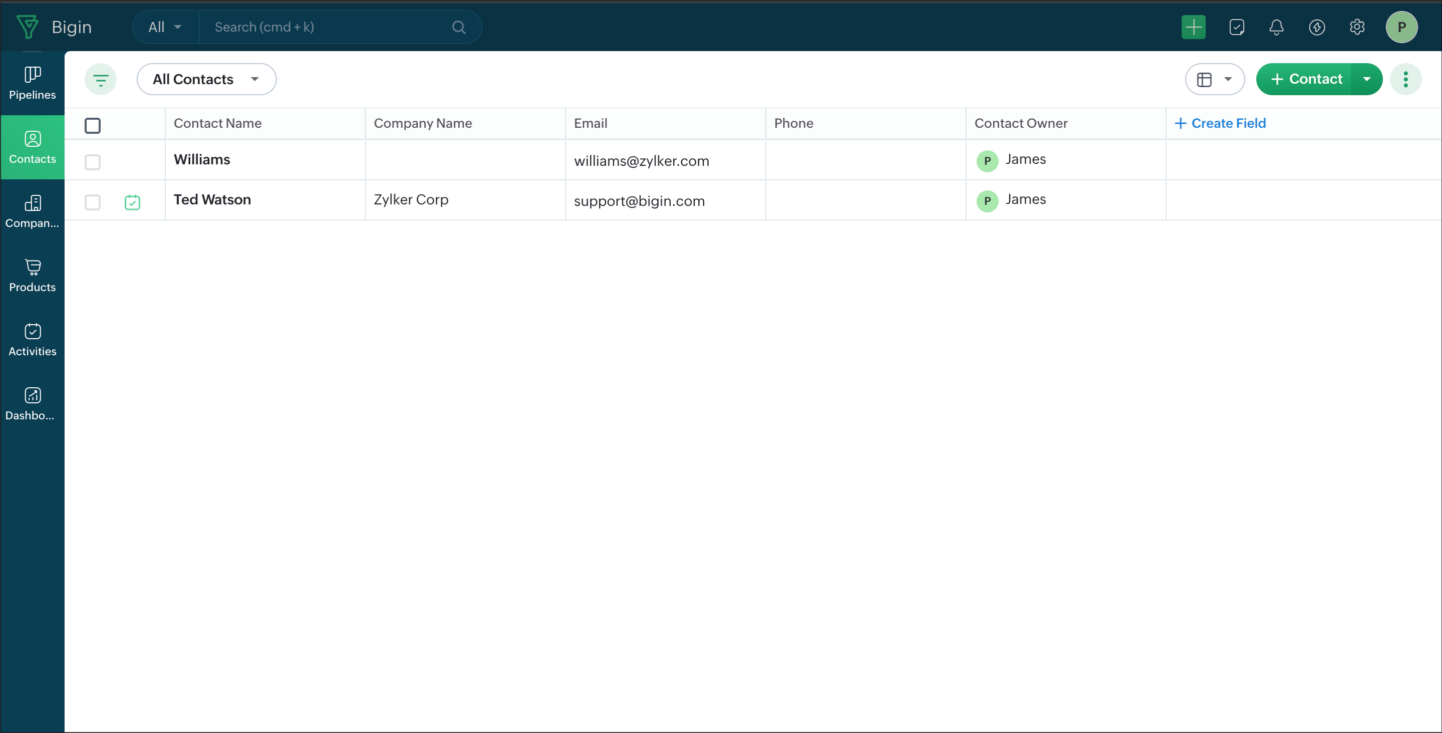 If the customer already exists in Bigin, it will update the respective contact. This integration ensures that no duplicate records are added by validating the uniqueness of email address, phone number, and name in the same order.