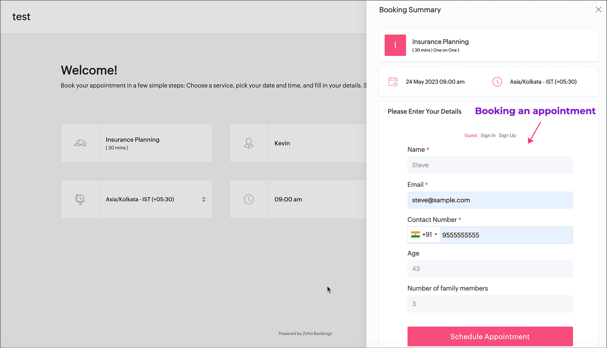 Let's see how the customer details are pushed when an appointment is booked. We'll now book an appointment.