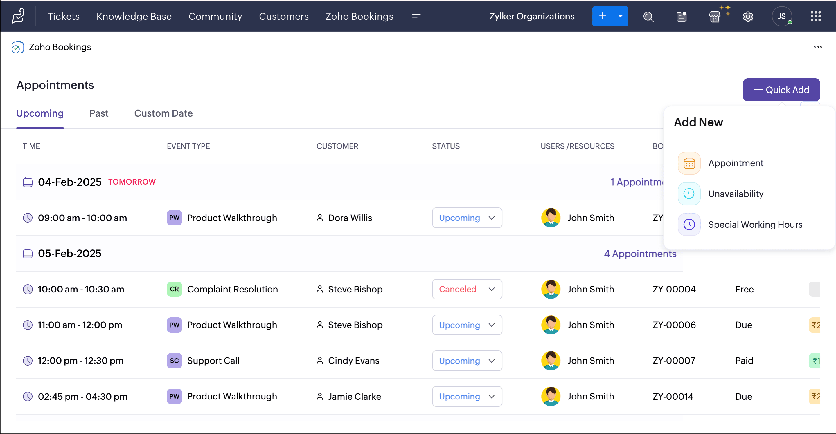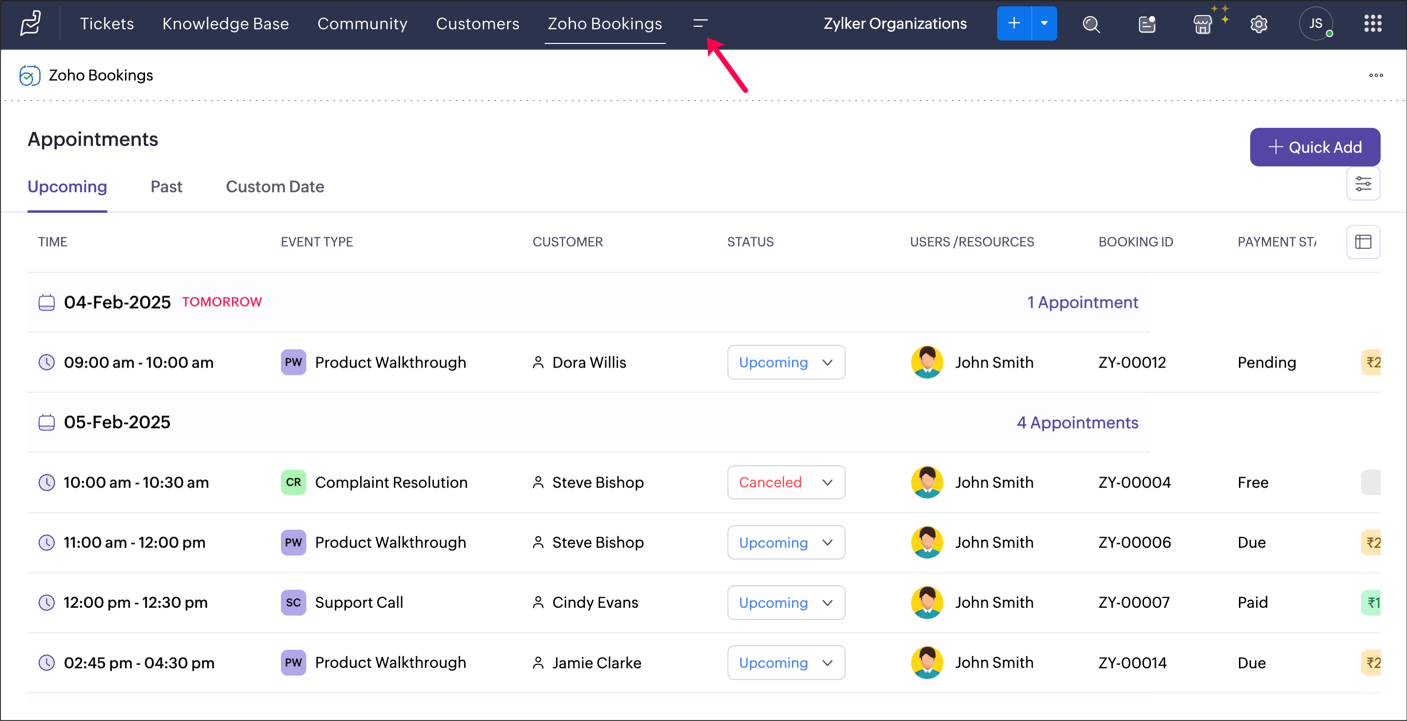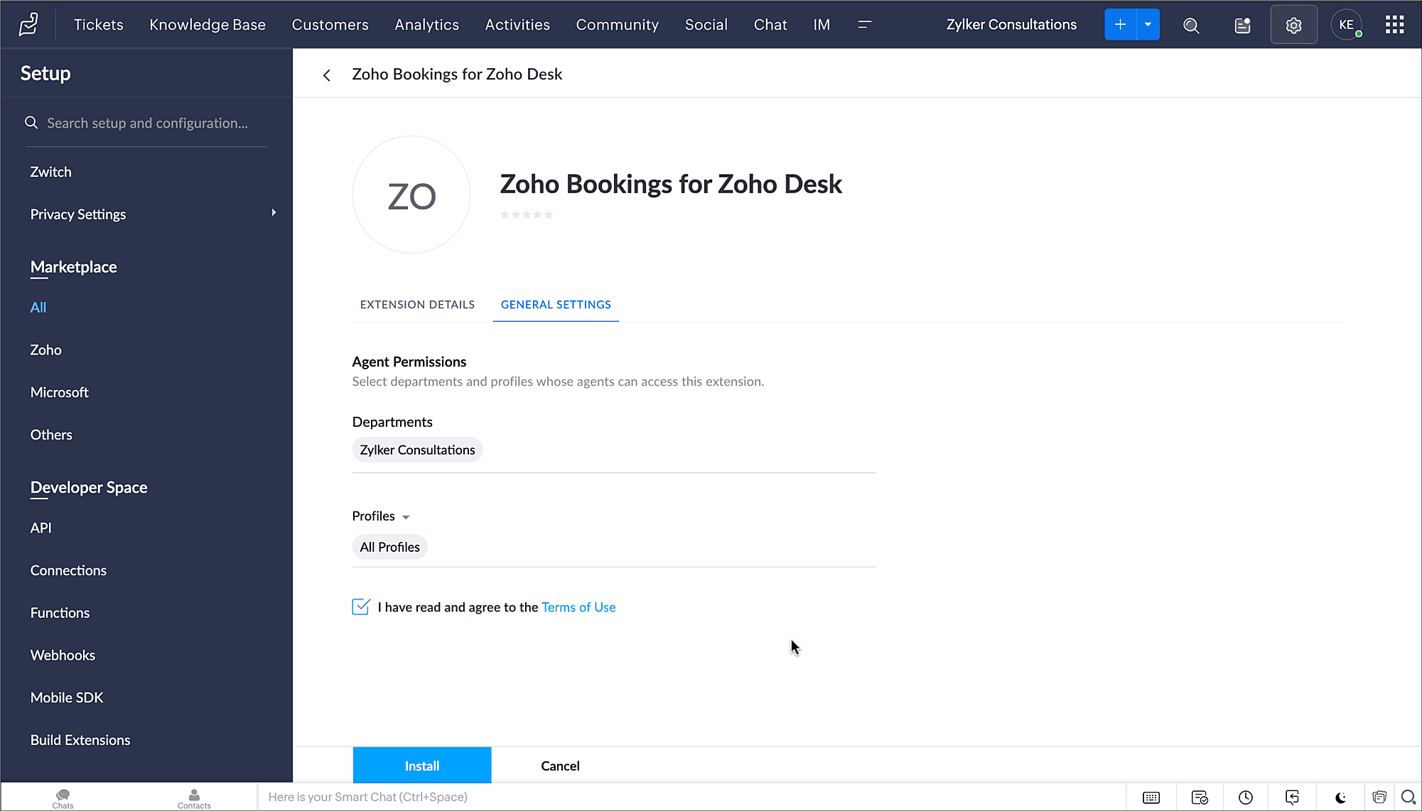 Zoho Desk is a customer service portal where agents can provide support to customers and solve their issues. Agents and customers can schedule appointments when more assistance is needed. To simplify scheduling, the Zoho Bookings extension can be installed in Zoho Desk.