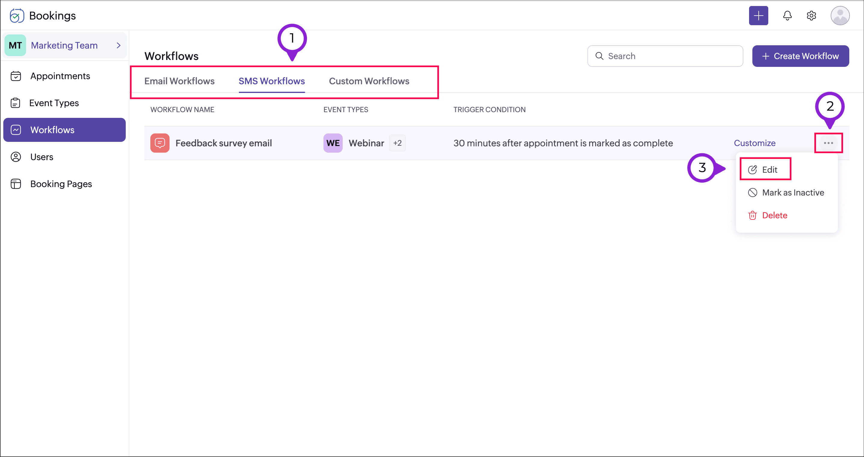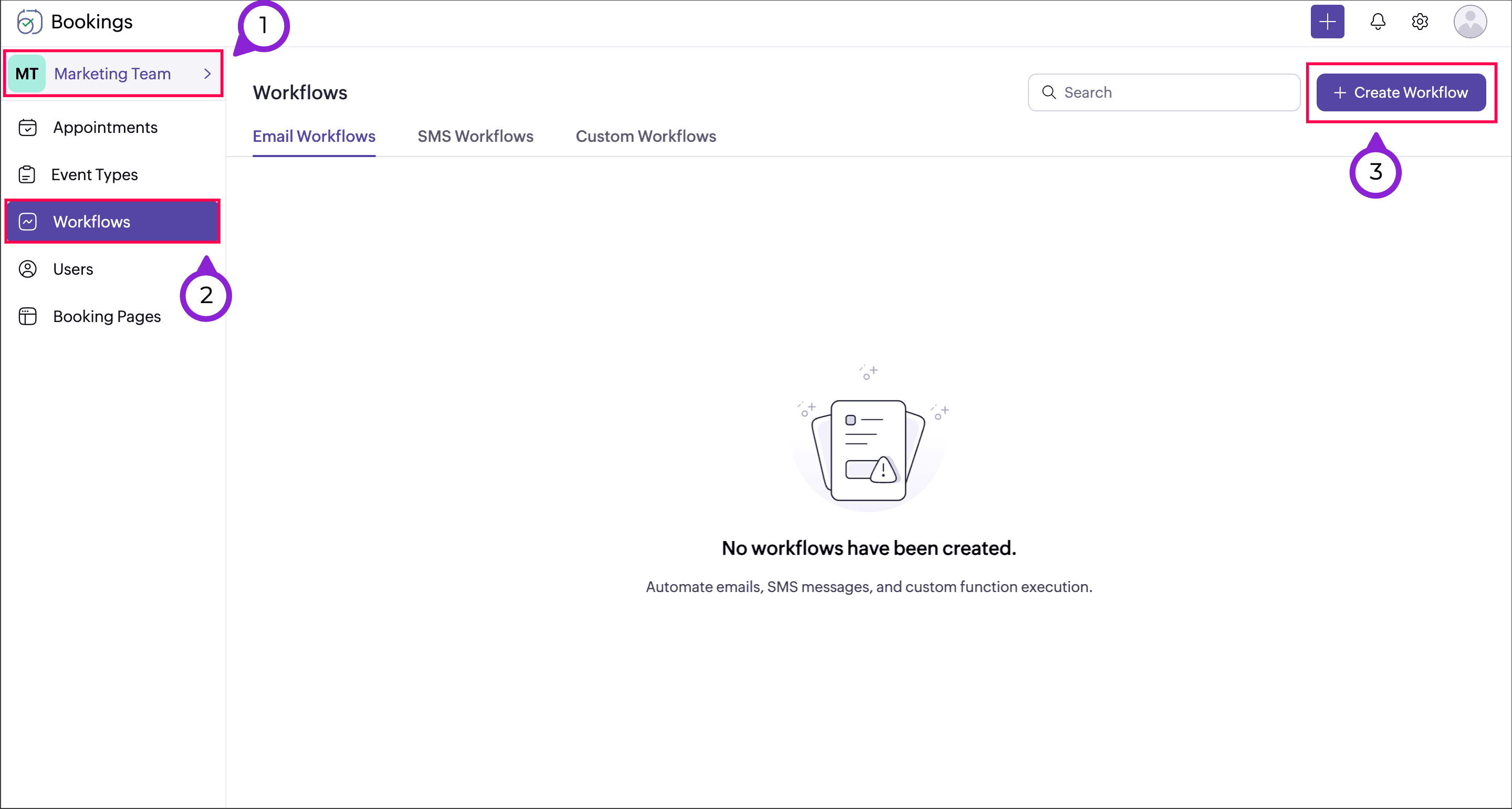 For example, you can send an email to your customer one hour before an appointment start time to confirm if they'll show up. Likewise, workflows can be used in various other scenarios to automate different tasks.
