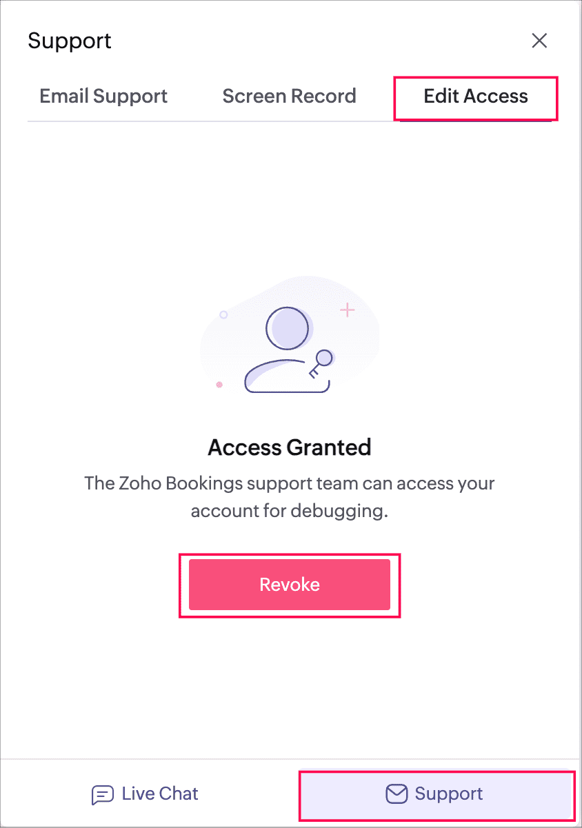 Once the issue is resolved, you can revoke the access that you have granted by clicking Revoke button.