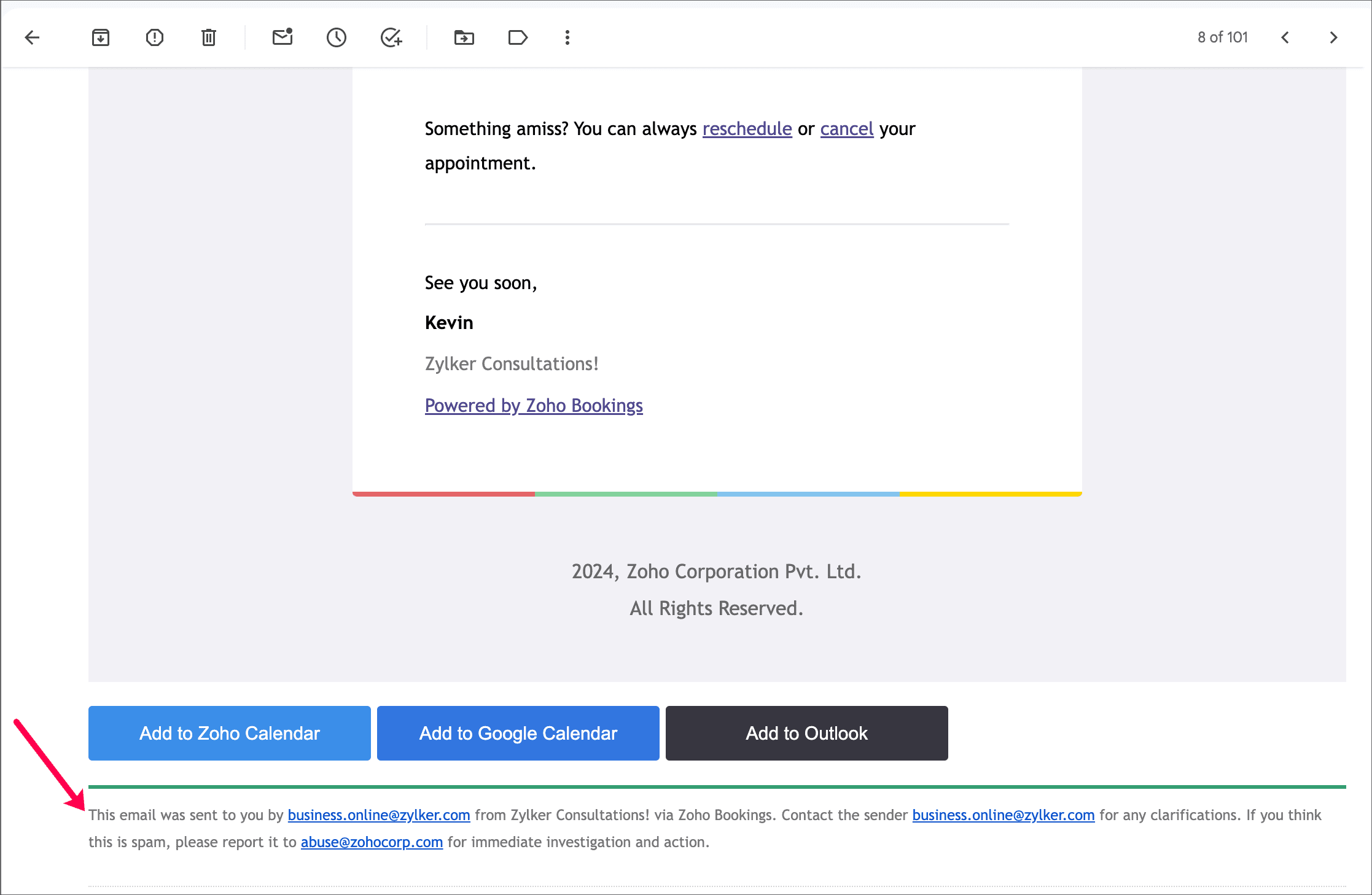 In email notifications, the footer contains anti-spam disclaimer text, as shown in the below image. To send notifications without this content, you can disable it using the below steps.