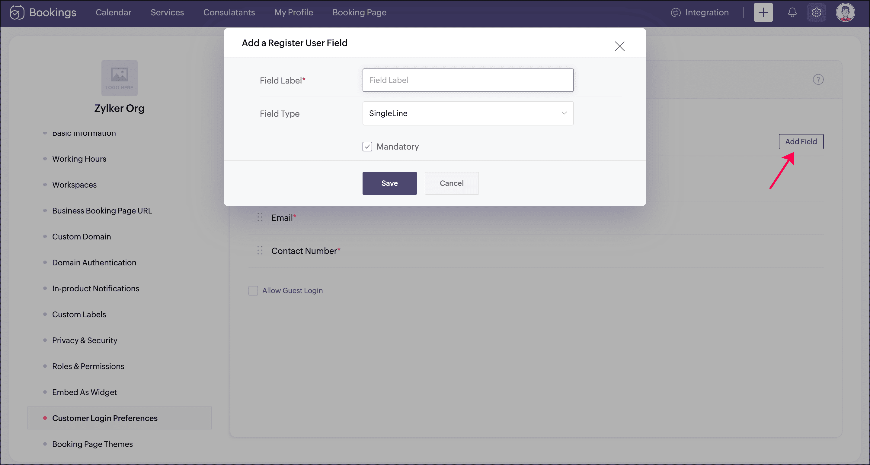 You can enable both guest and registered user login options, giving customers the flexibility to choose how they want to book. You can also configure the custom fields for registered login, which would be listed in the booking form. This setting is applied at the business level and will reflect across all associated booking pages.4.Use case