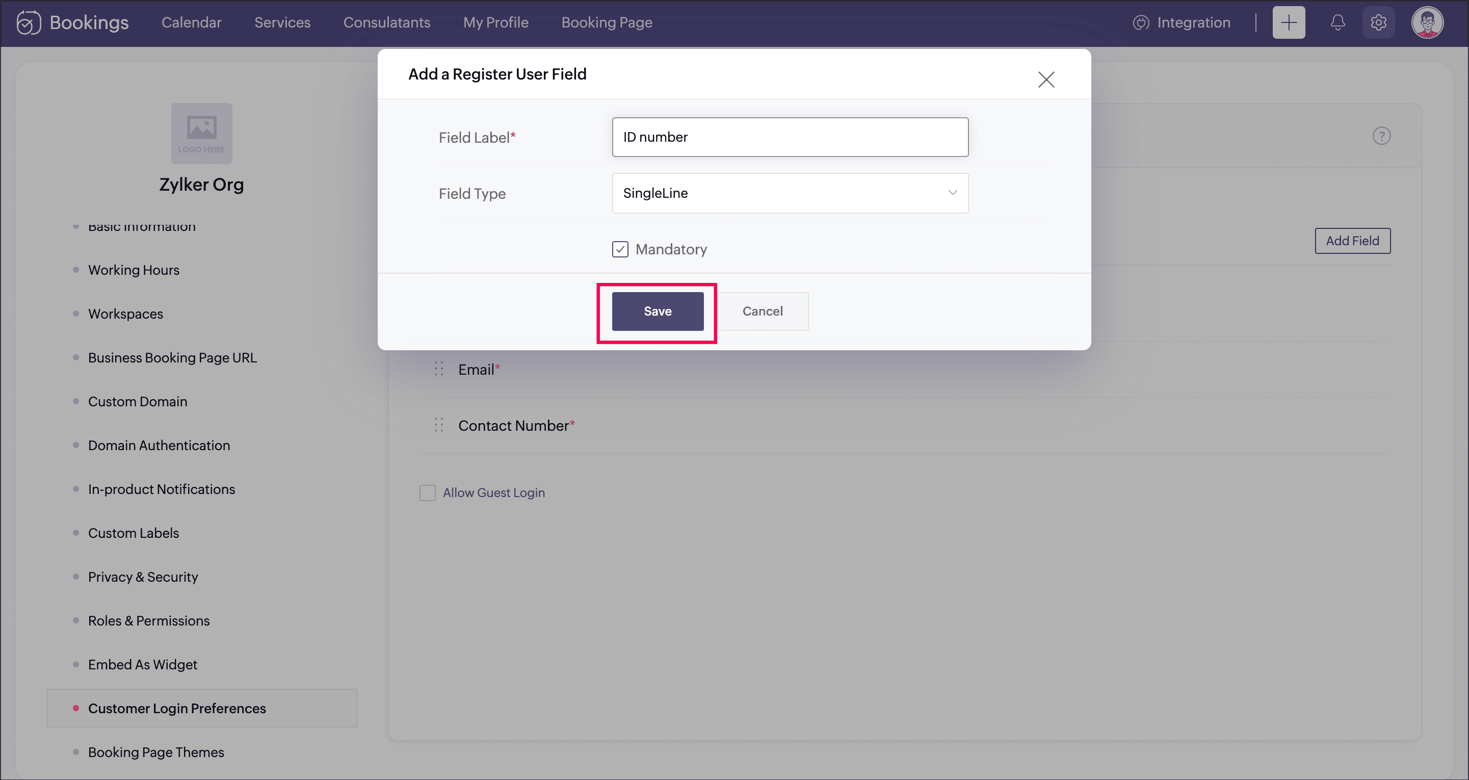 Note : You can configure the custom fields for the guest login under the workspace booking form. - Click Save to apply the settings.