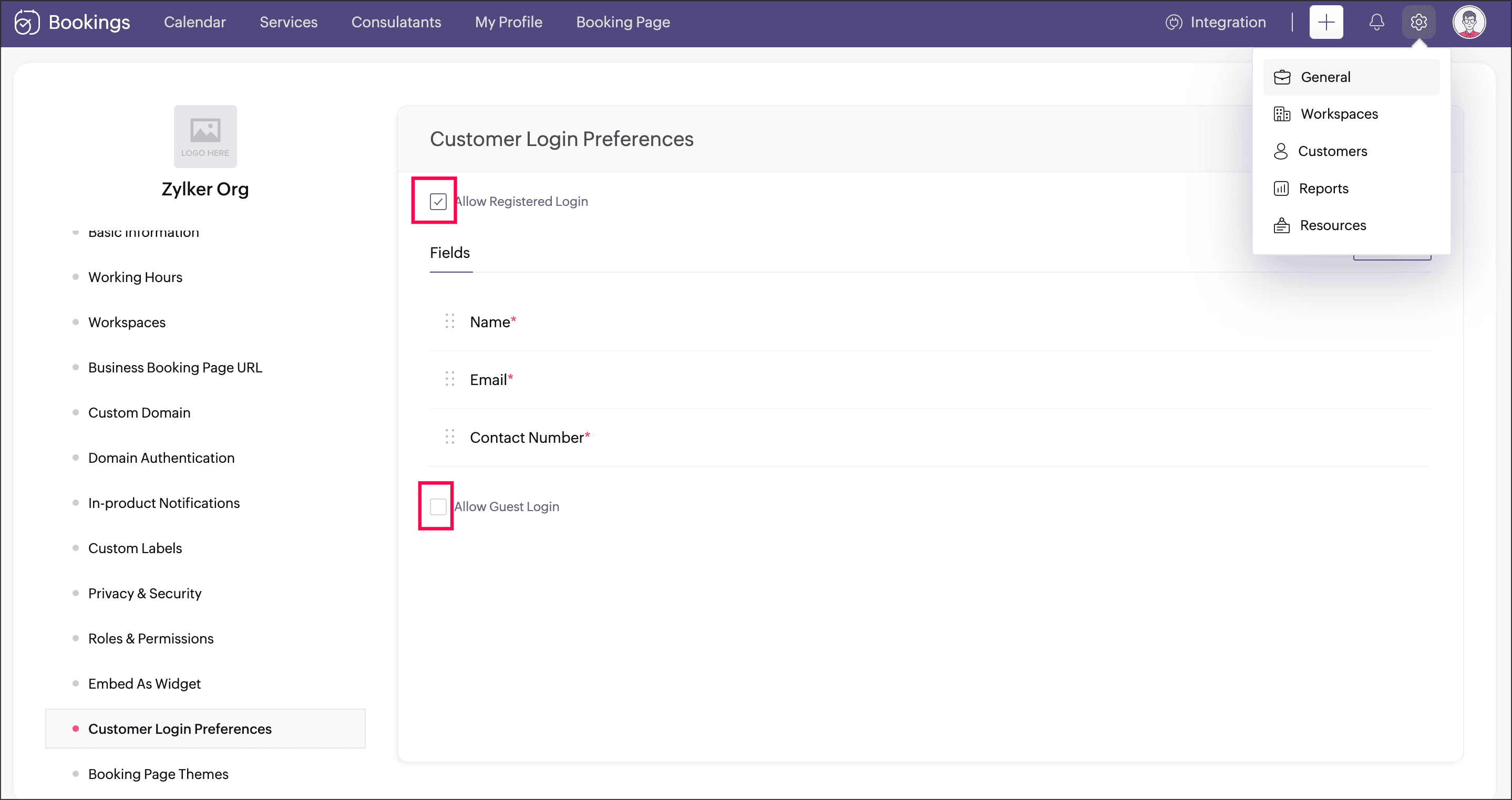 The selected login preference applies to all booking pages under your business.