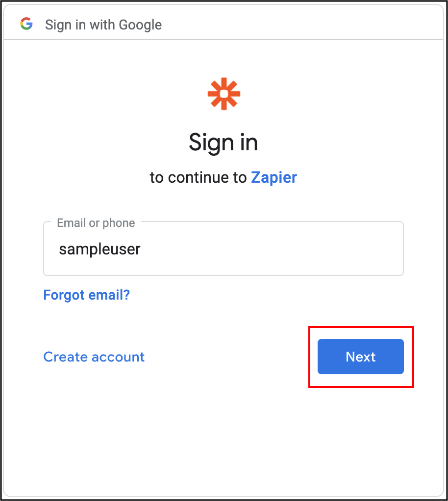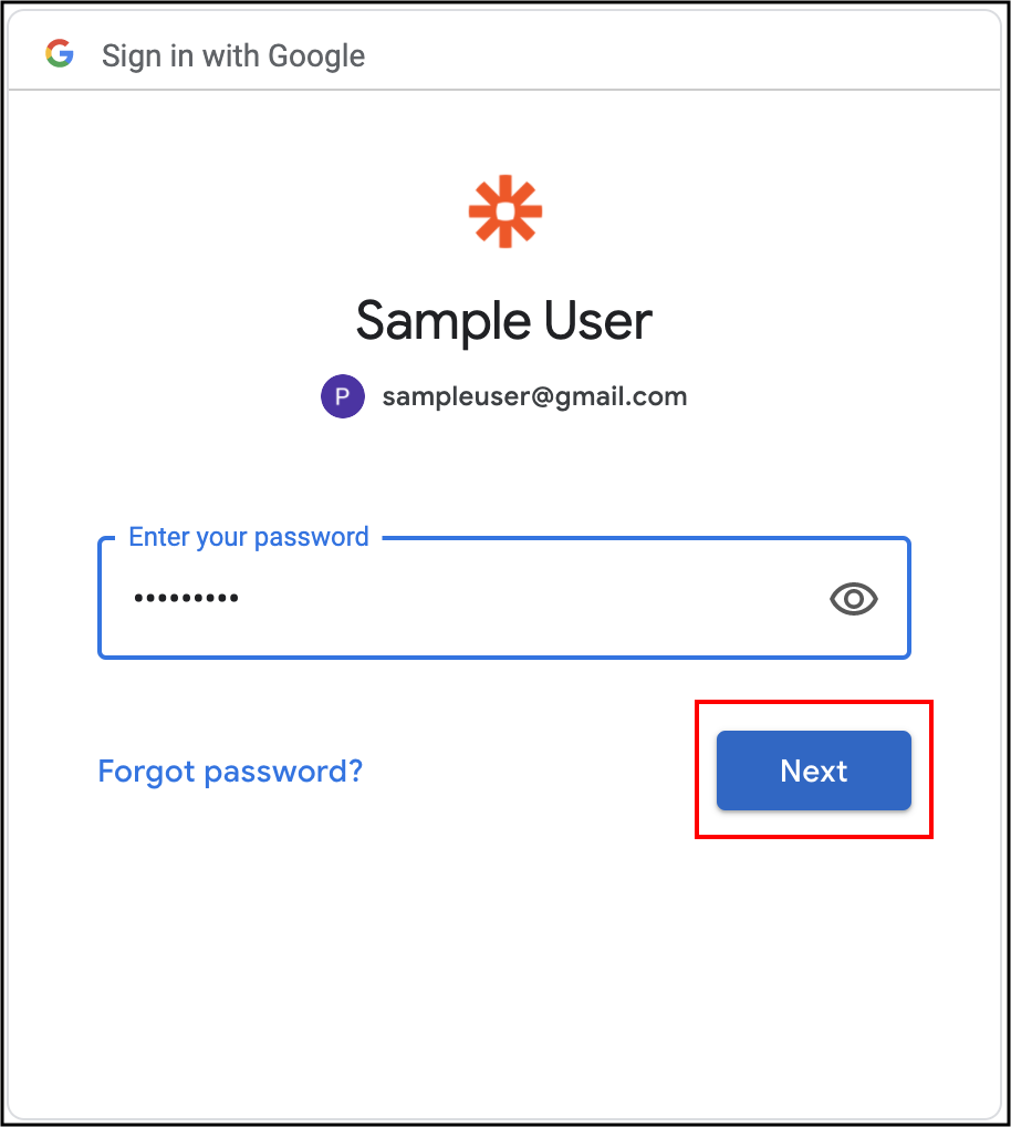 7. Type the password and click Next. You are now logged in to Zapier.![]()