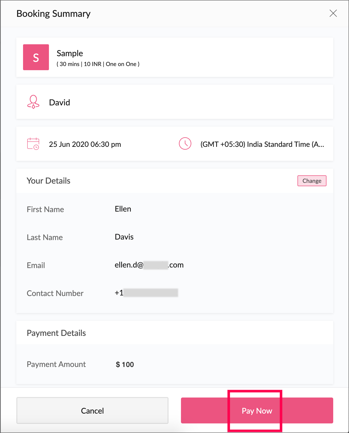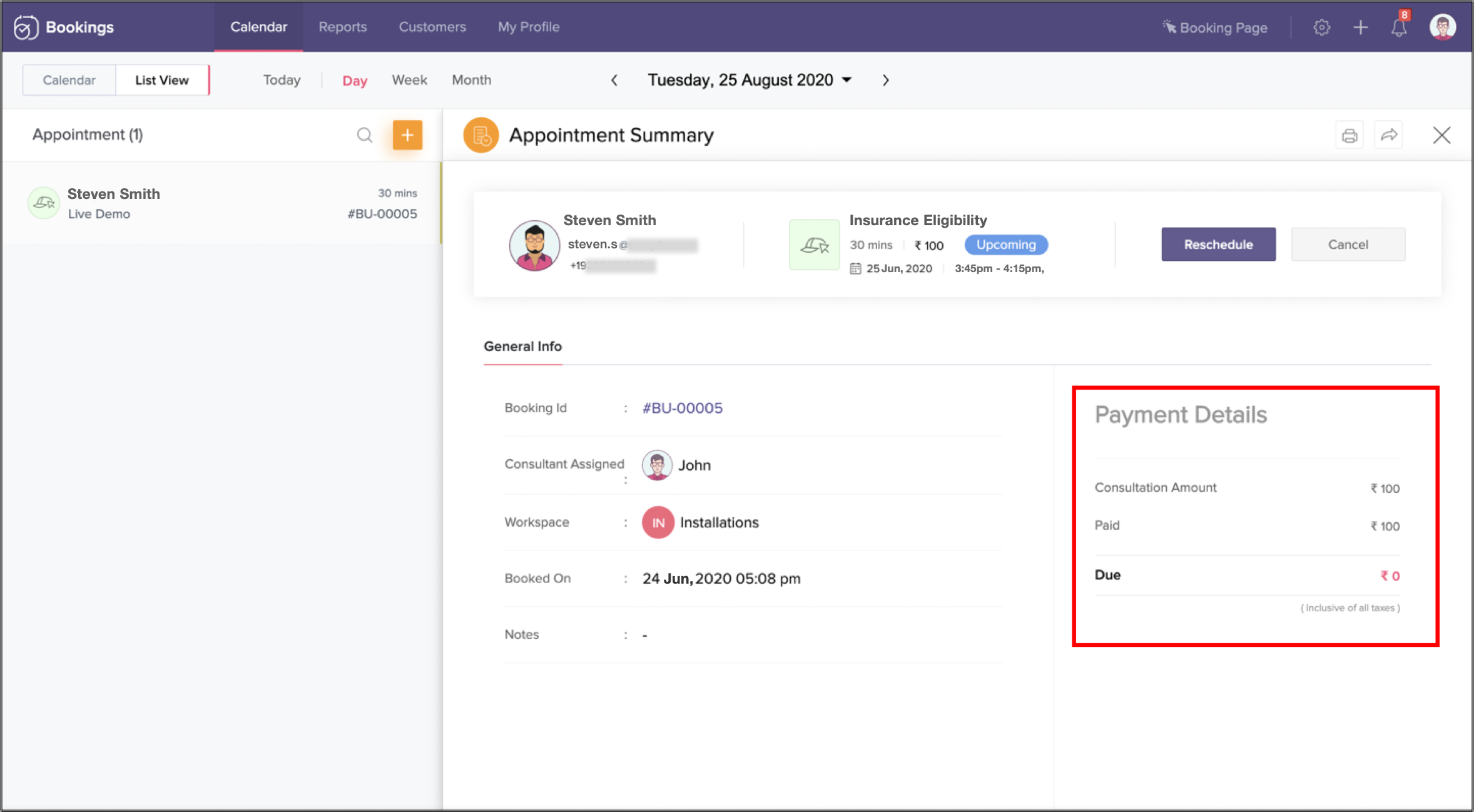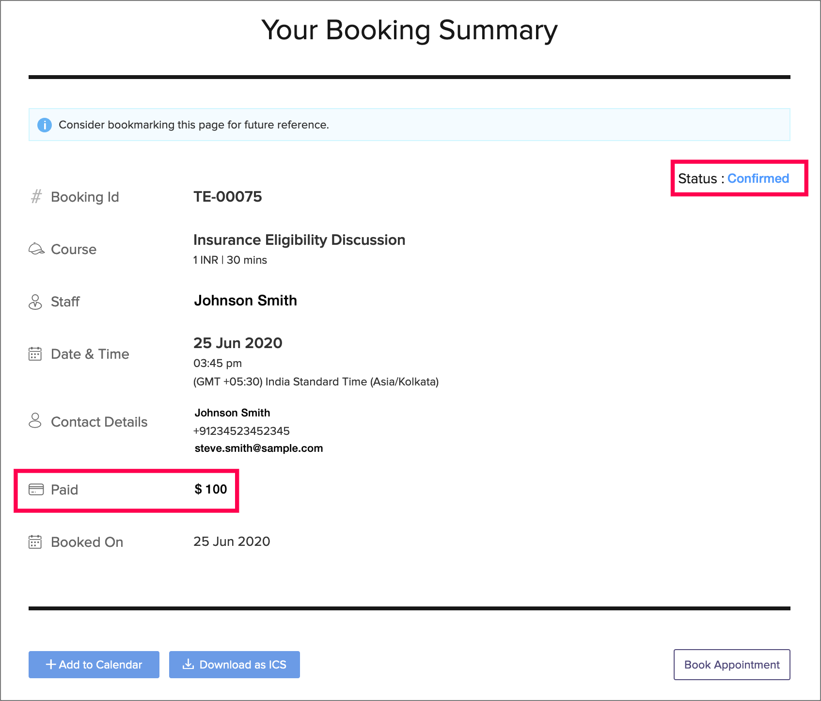 Note: Choose a suitable Payment Type for your business needs against the corresponding Services under the Service Information tab. The available options are "Full Payment", "Deposit" and "Optional". The below page is when Payment Type is "Full Payment". | Sign-up date |