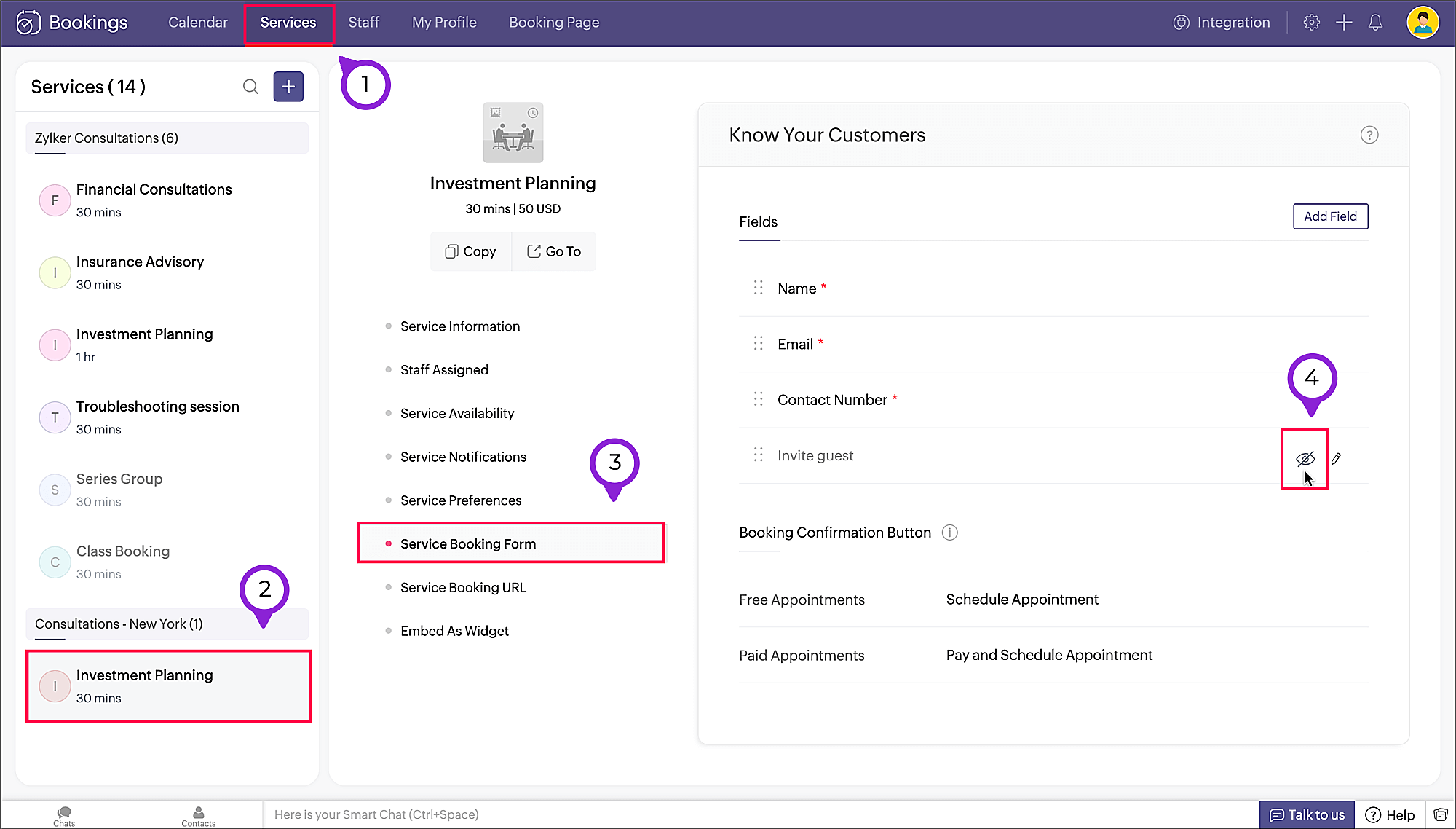 Click Service Booking Form in the middle pane.