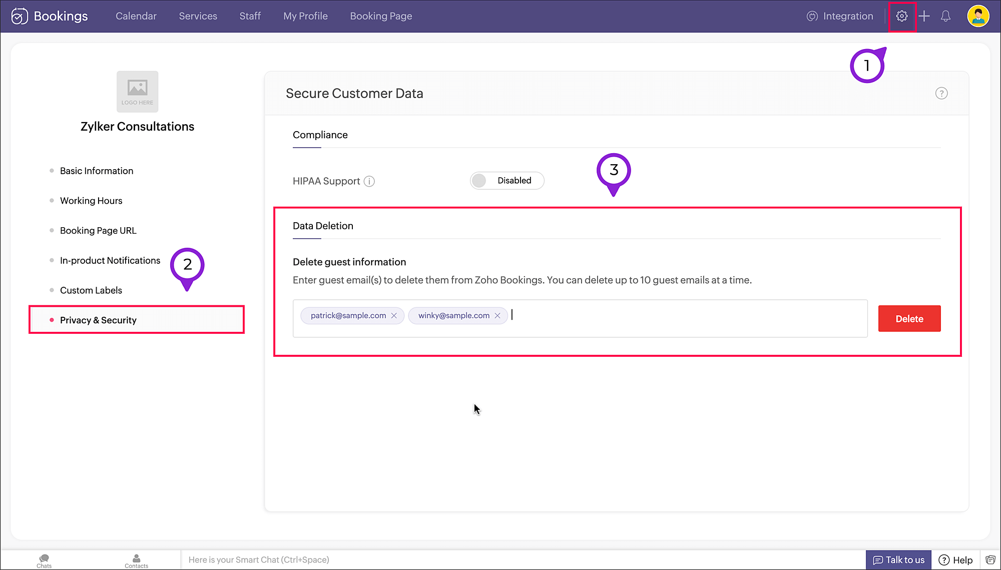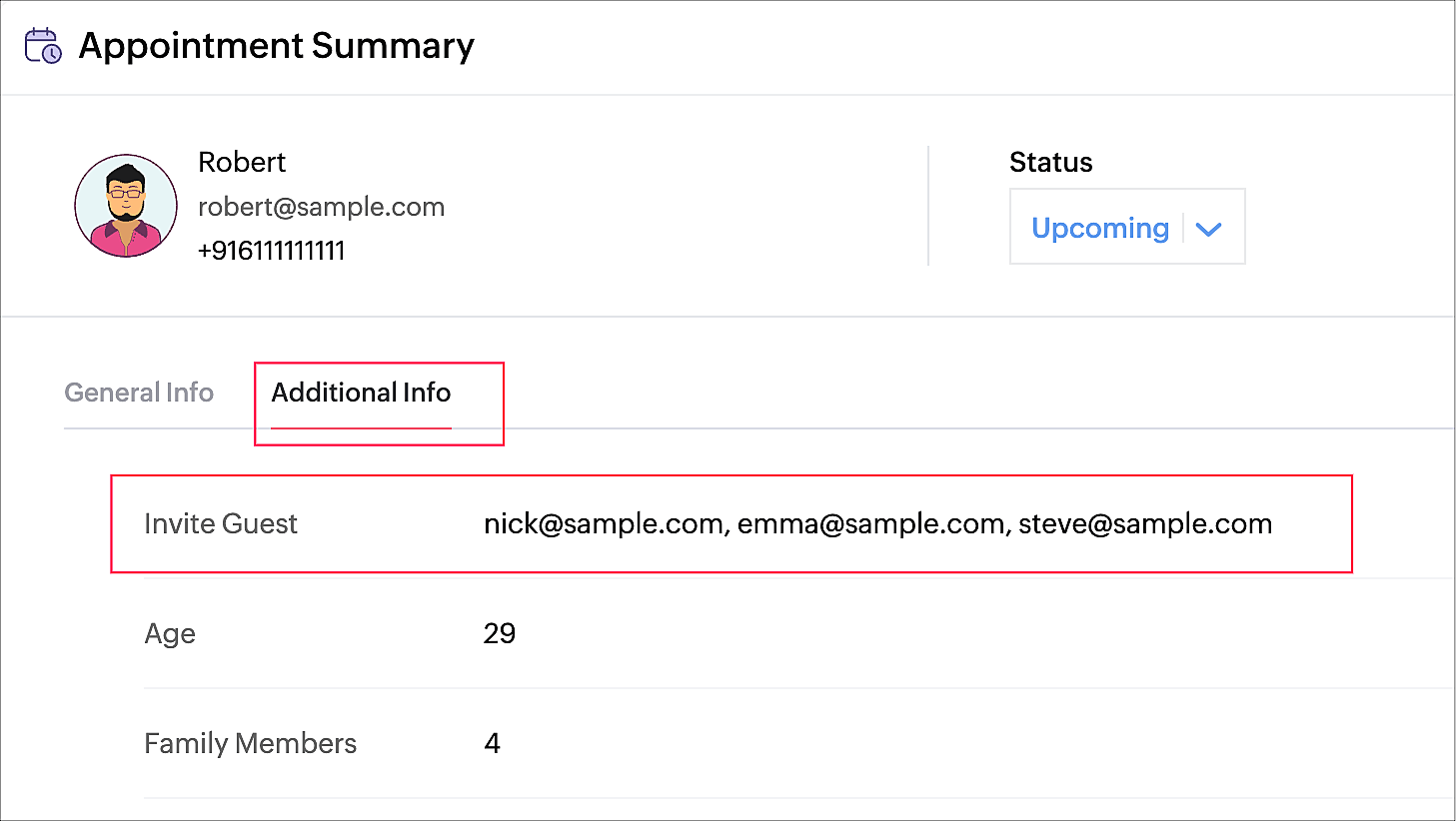 Note: A maximum of ten guests can be added for an appointment through this field.