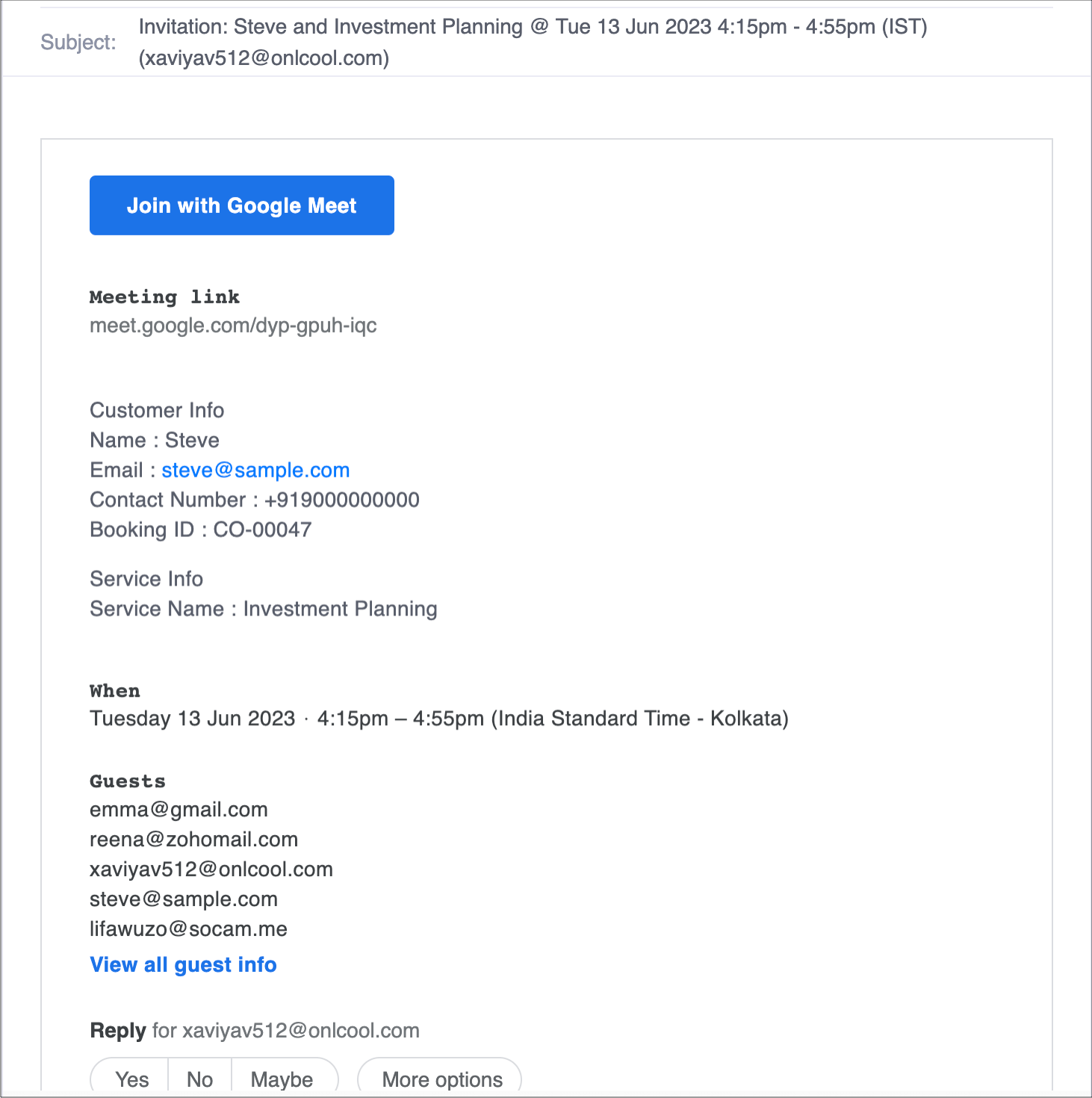 Using the Guest Invite feature, customers can invite additional participants (guests) to attend an appointment with them. A maximum of up to ten guests can be invited for an appointment. Email notifications, reminders, and Calendar/Online Meeting invites will be sent to all the guests added.