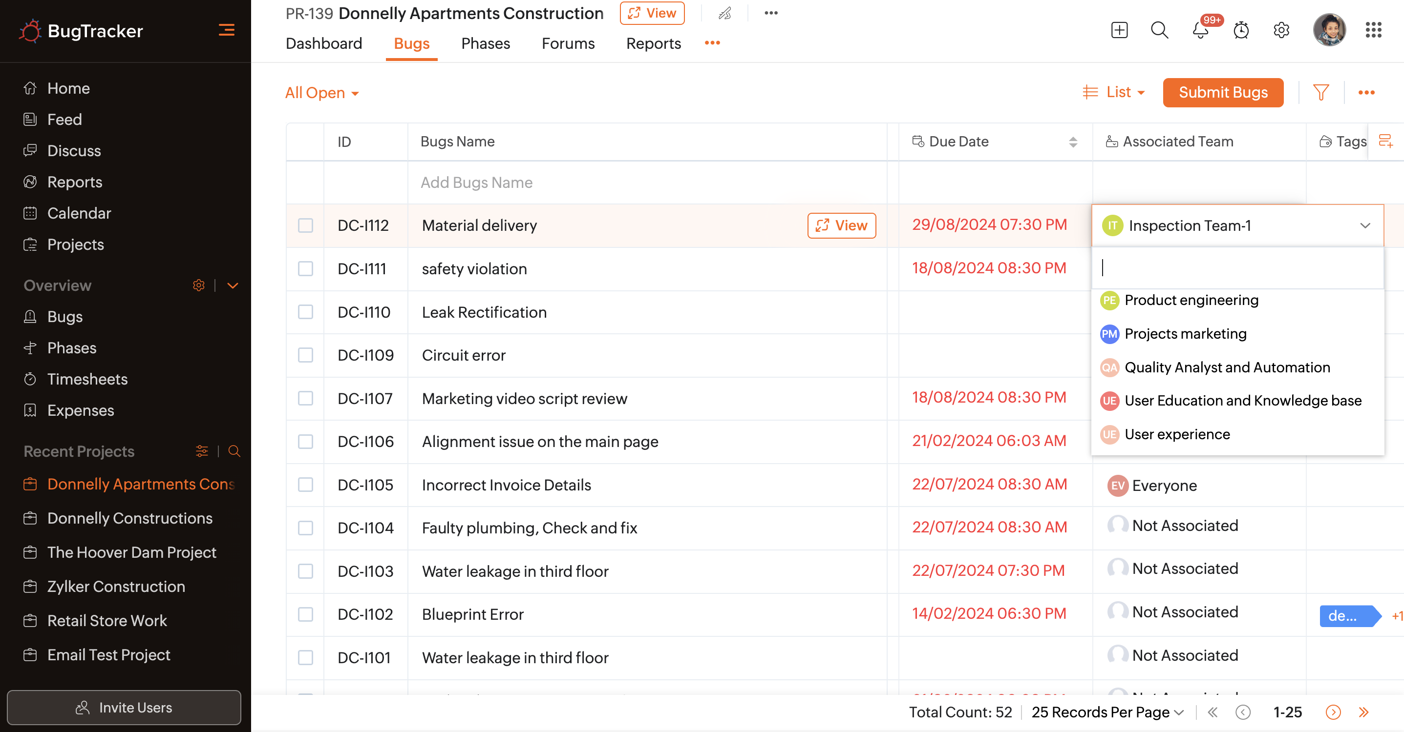 Zoho BugTracker allows you to assign teams to the bugs in your project. The Associated Team field helps you to bring together bugs in your project with your teams so that you can resolve the bugs more effectively.