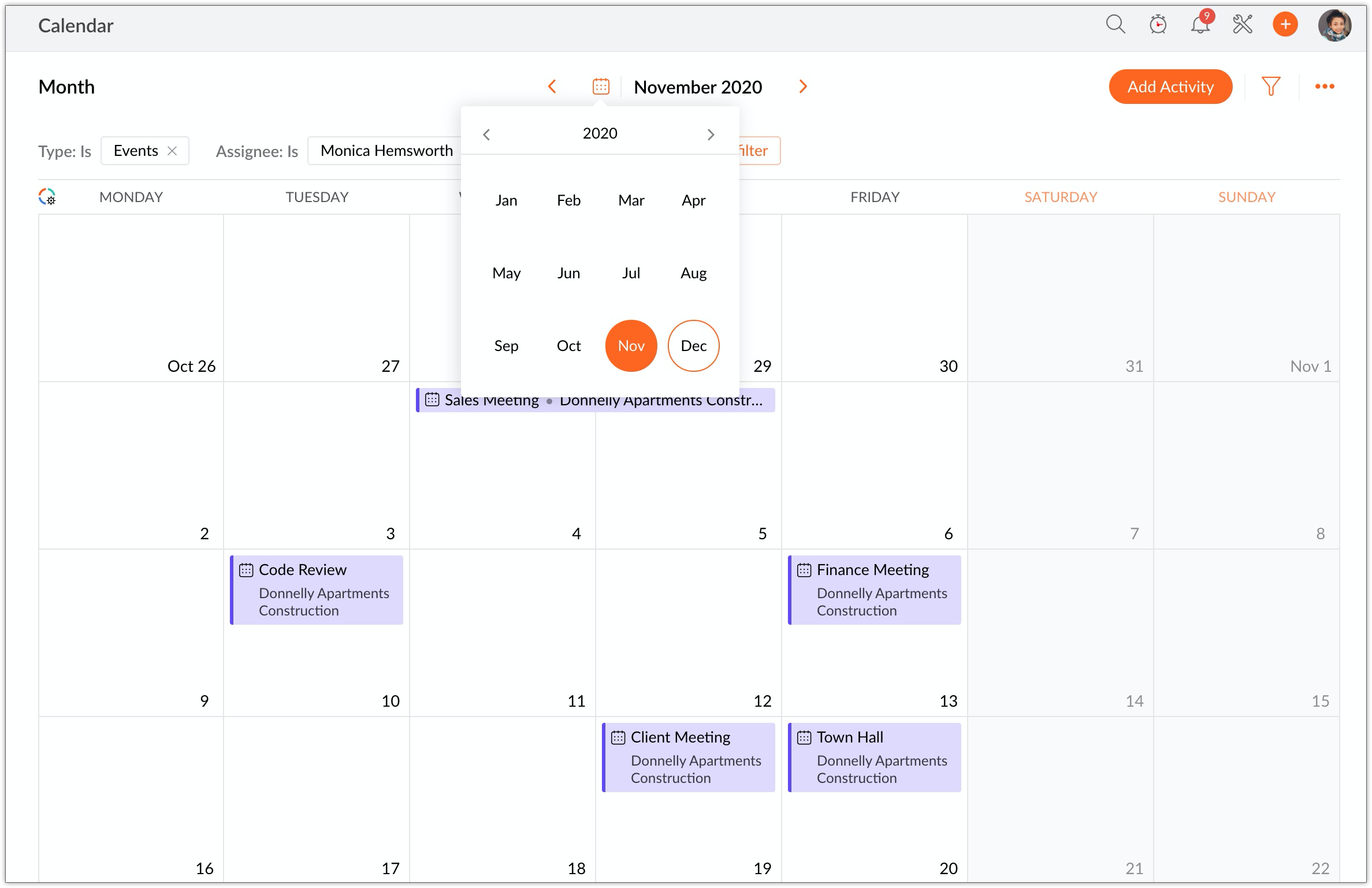 2. Click on a date or click Add Activity in the upper-right corner.
