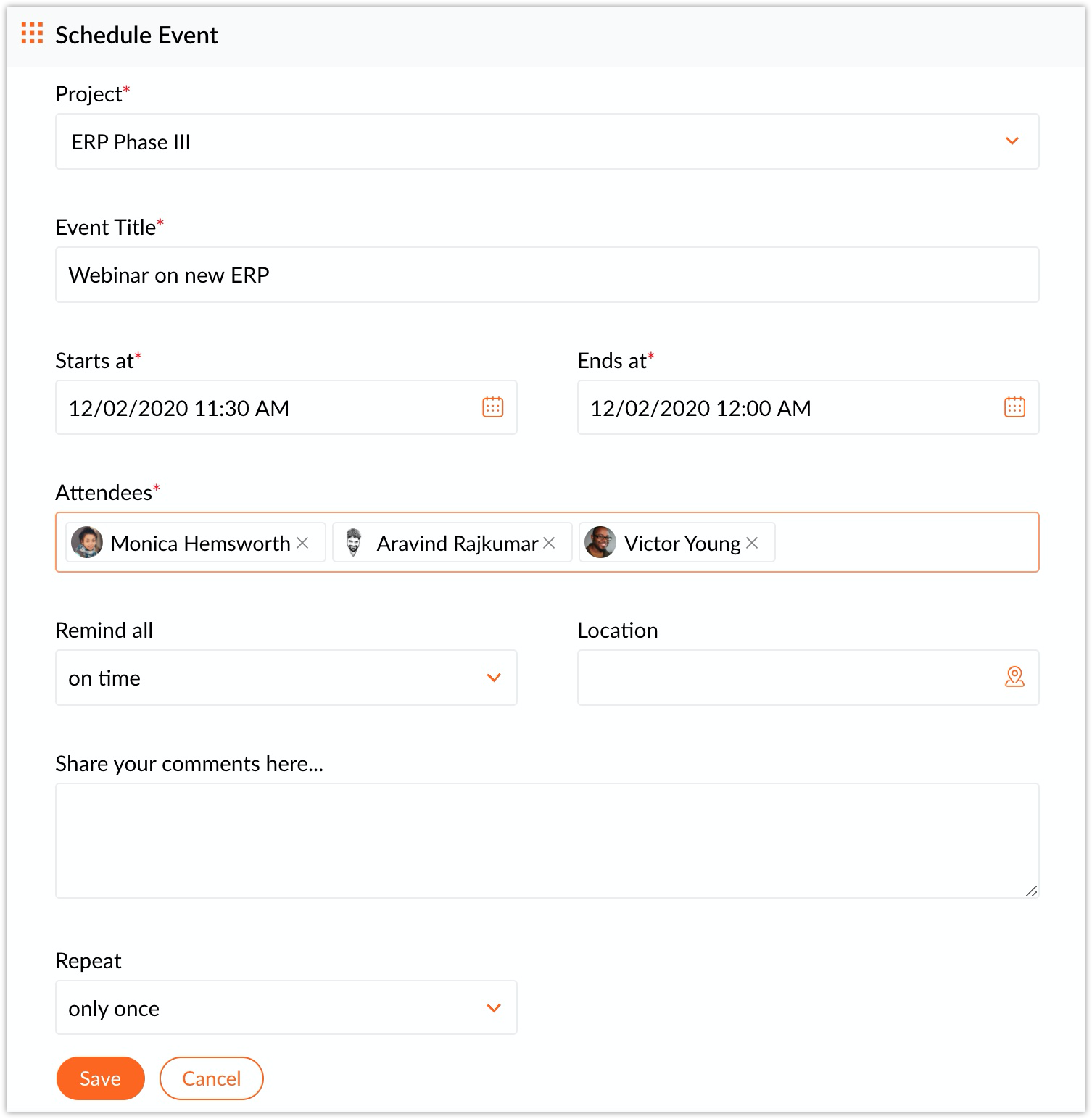 8. Select Attendees from the list of users in your project.