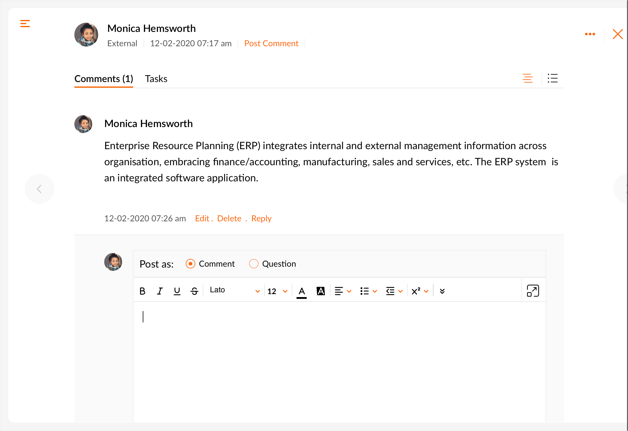 Post a forum topic and engage with users to share their ideas as comments. You can view the total number of replies, post a new reply, or update comments that you've posted.