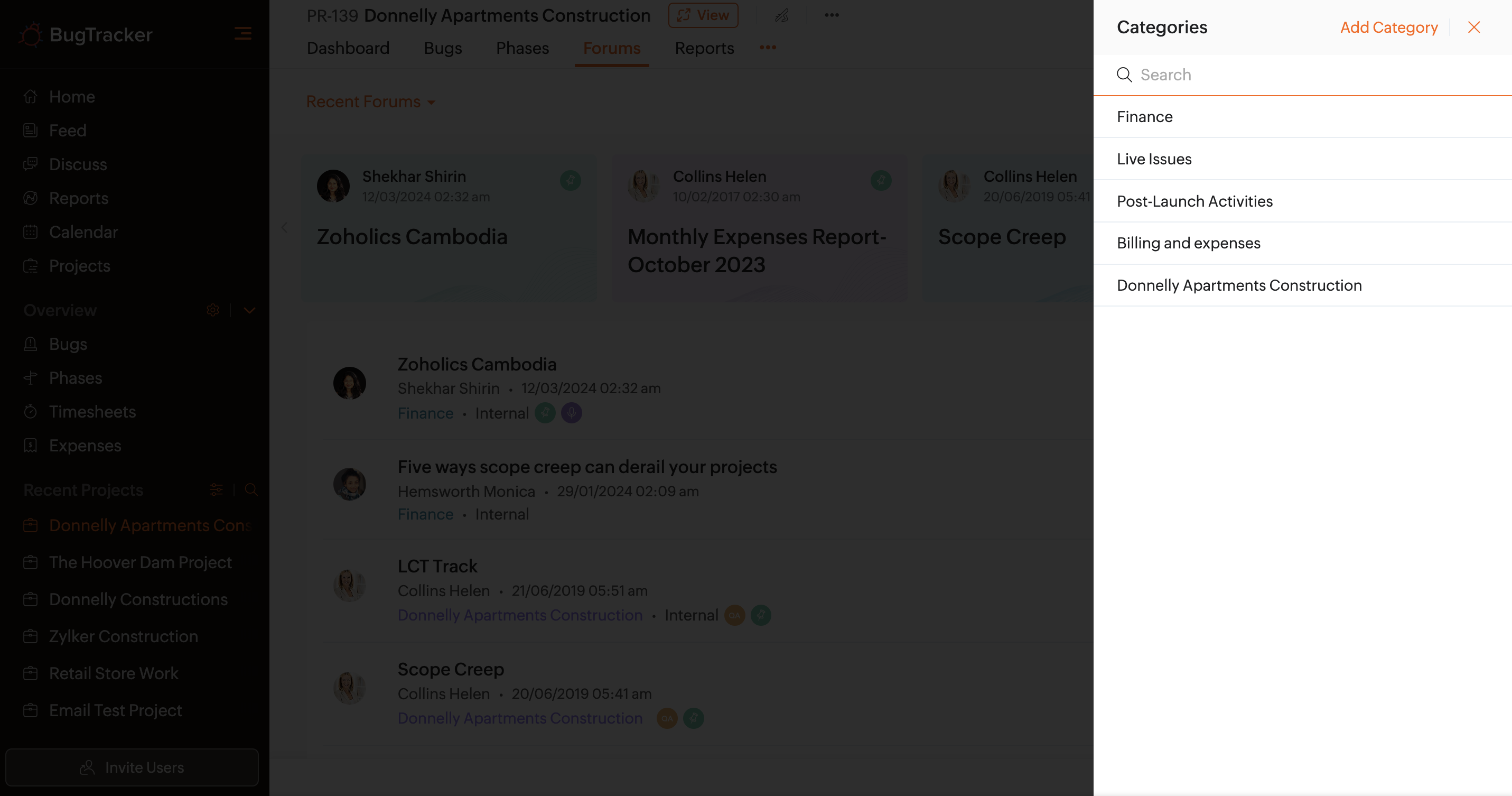 Organize Folders Organize your project files based on a category. You can group all your marketing collateral in a folder and sales documents in another folder, so that it's easy to pick out. You can add, edit and delete folders in Zoho BugTracker. ...