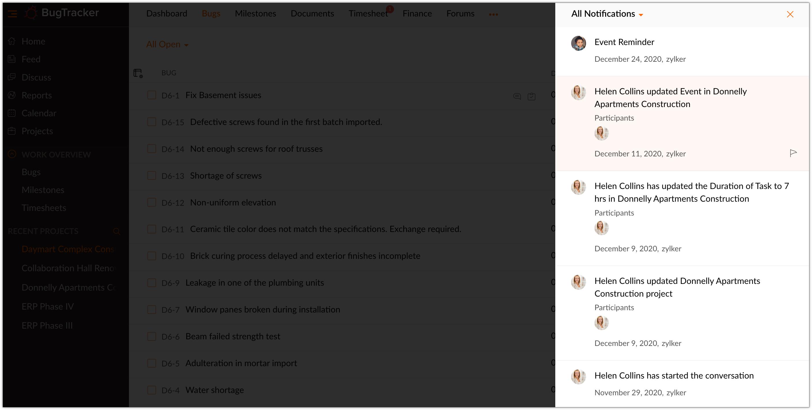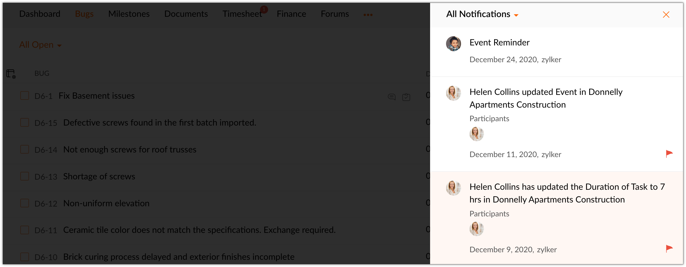 Stay up to date in the project with the help of notifications. Click in the top band and view the latest updates in the project. You can also navigate to a specific work item from the notification panel itself. Click Mark all as read to mark all notifications as read..