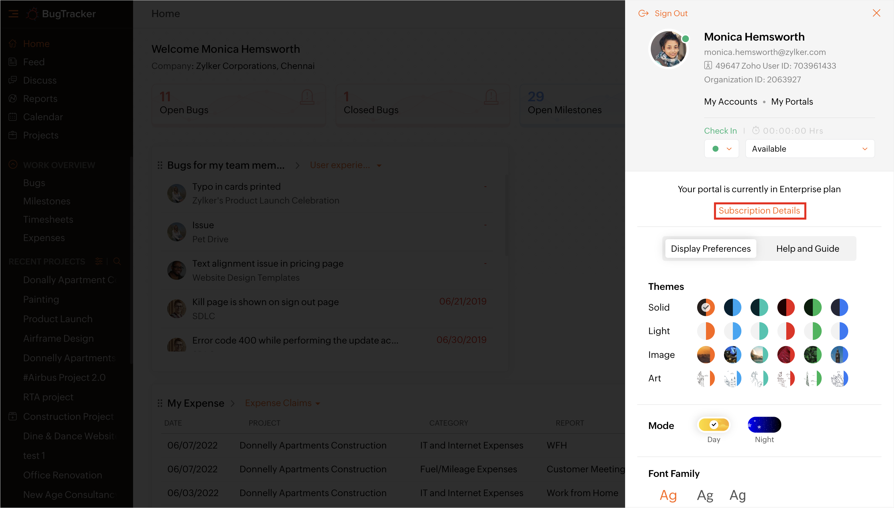 1. Click your profile picture in the upper-right corner of the Zoho Projects top navigation band.