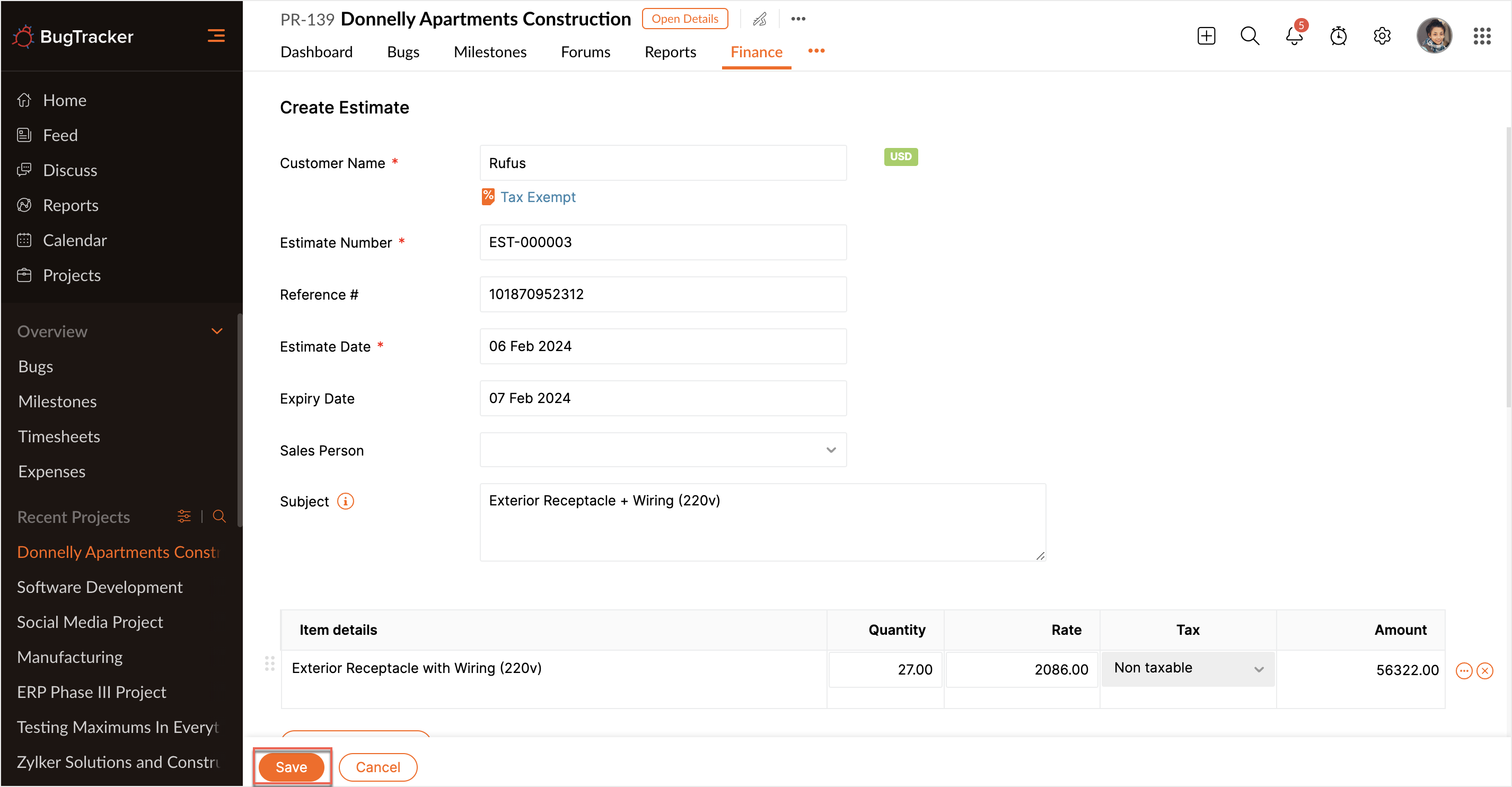 An Estimate is a proposal that you send to your customers with detailed quotation. After the customer accepts the estimate, it can be converted to a sales order or an invoice.