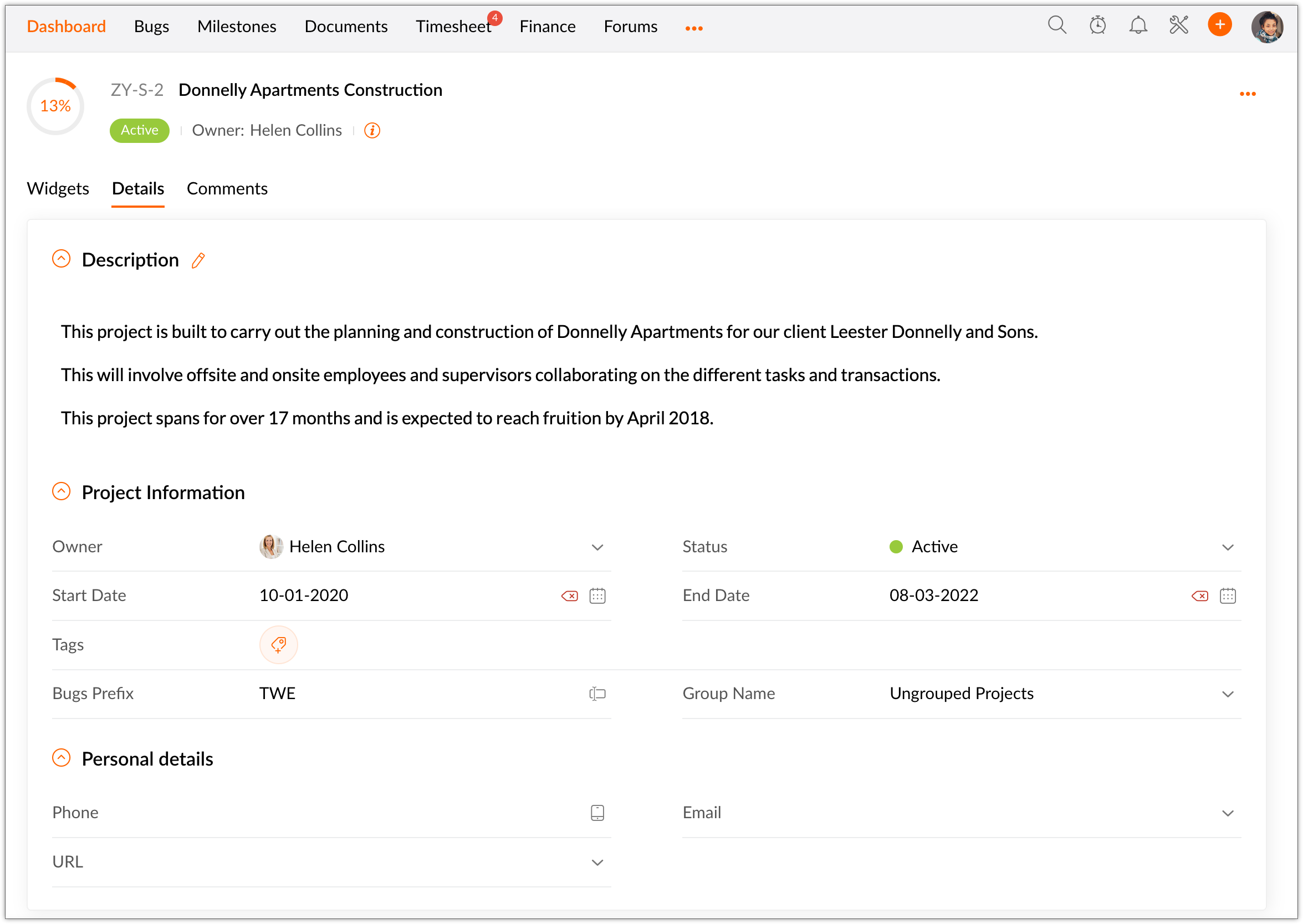 From the dashboard, you can also edit the project description, information and also add additional fields.