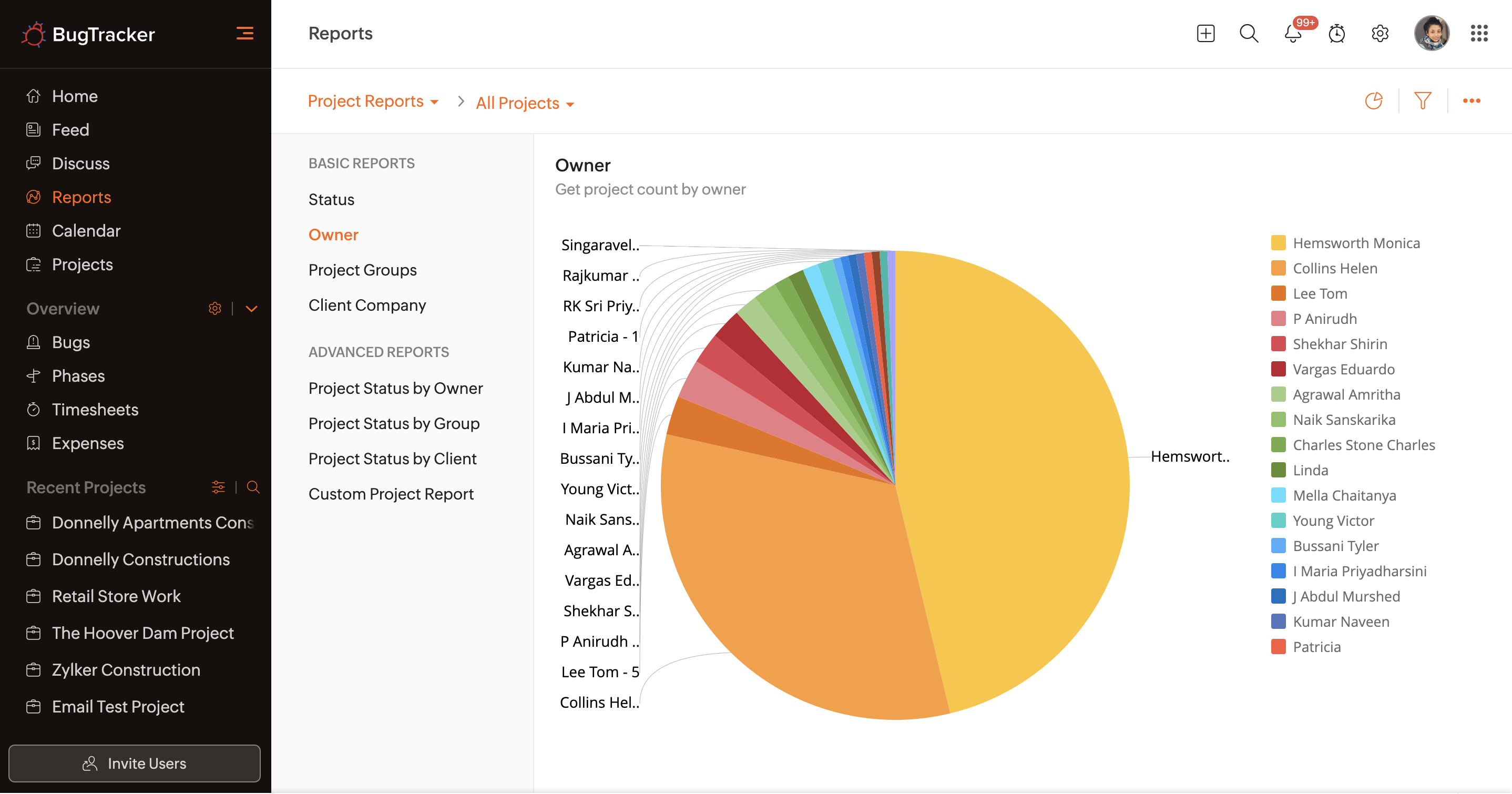 2. Advance Reports: View bug Status by Assignee, Bug Escalation by Assignee, Custom Bug Report, Custom-Time based report.