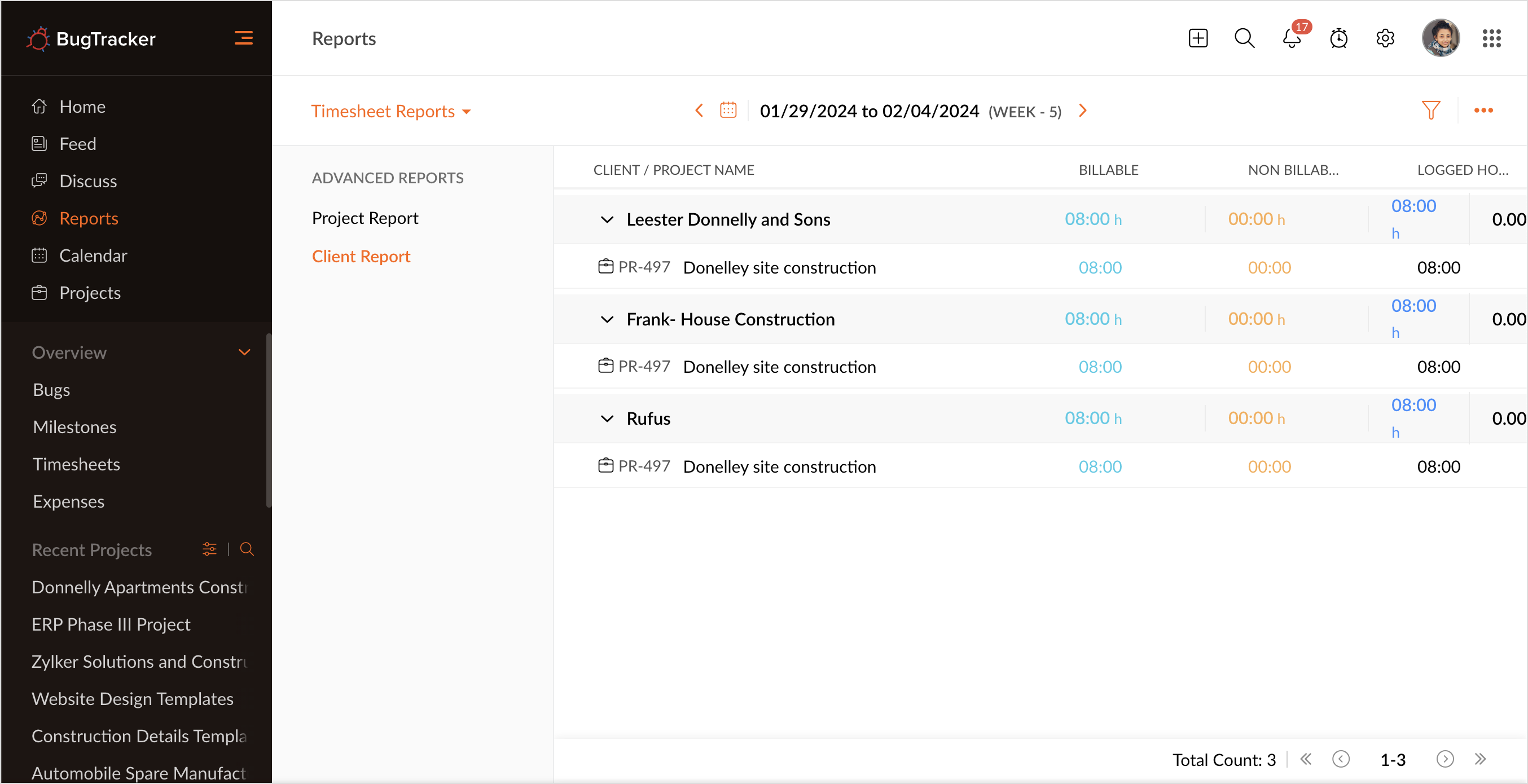 Portal Level Timesheet Reports | Online Help | Zoho Bugtracker