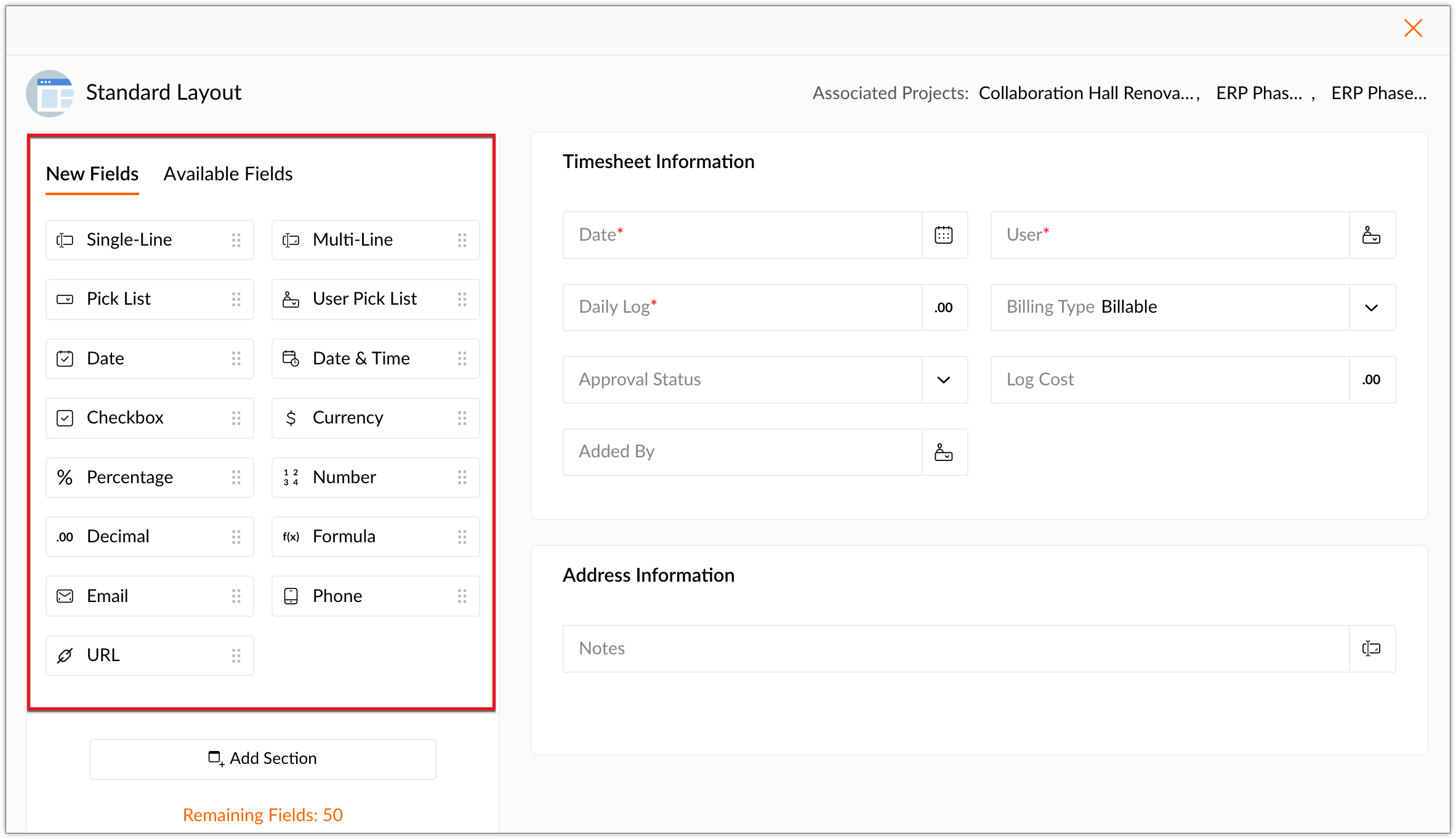 Timesheet Layouts & Fields