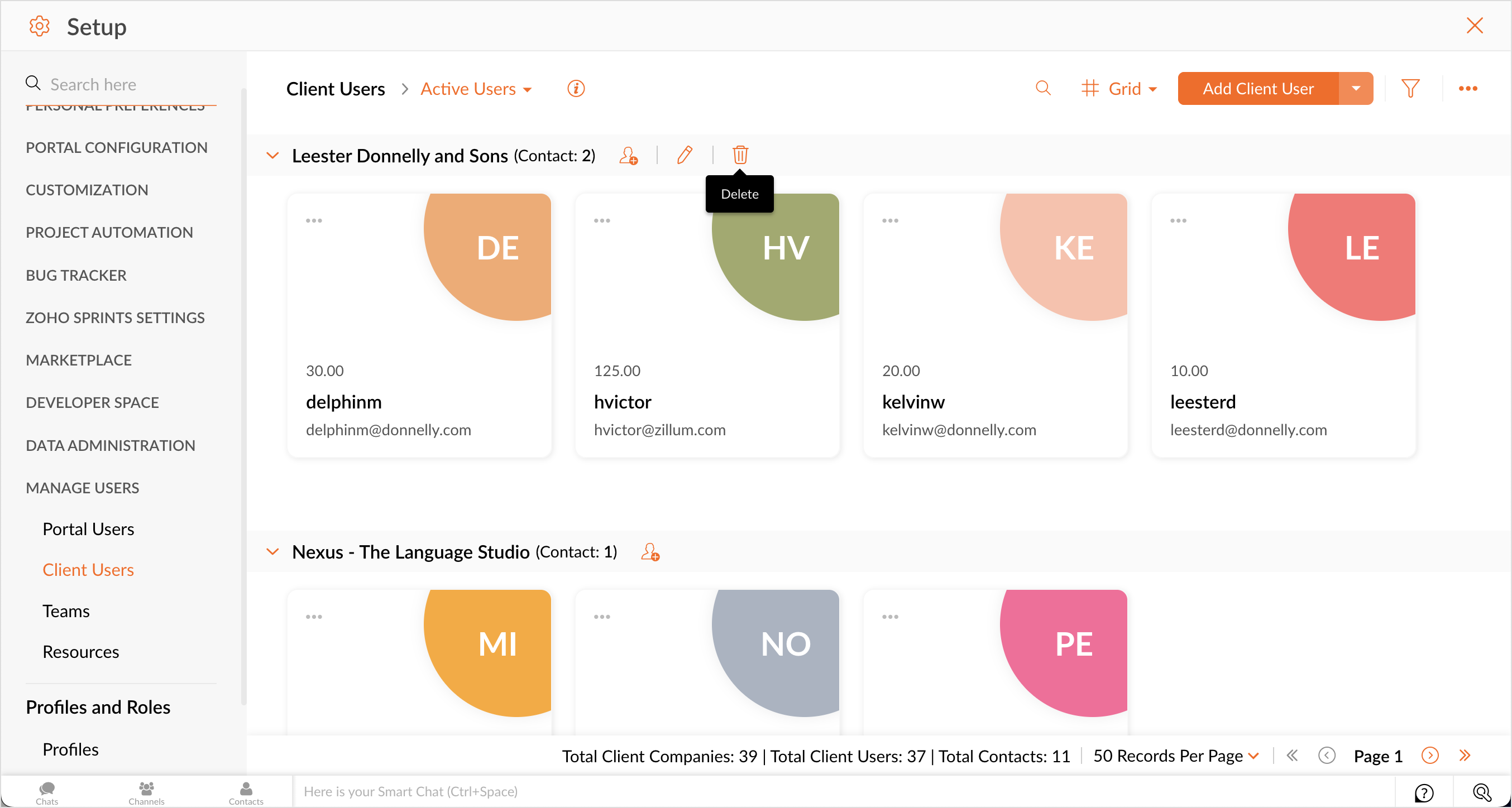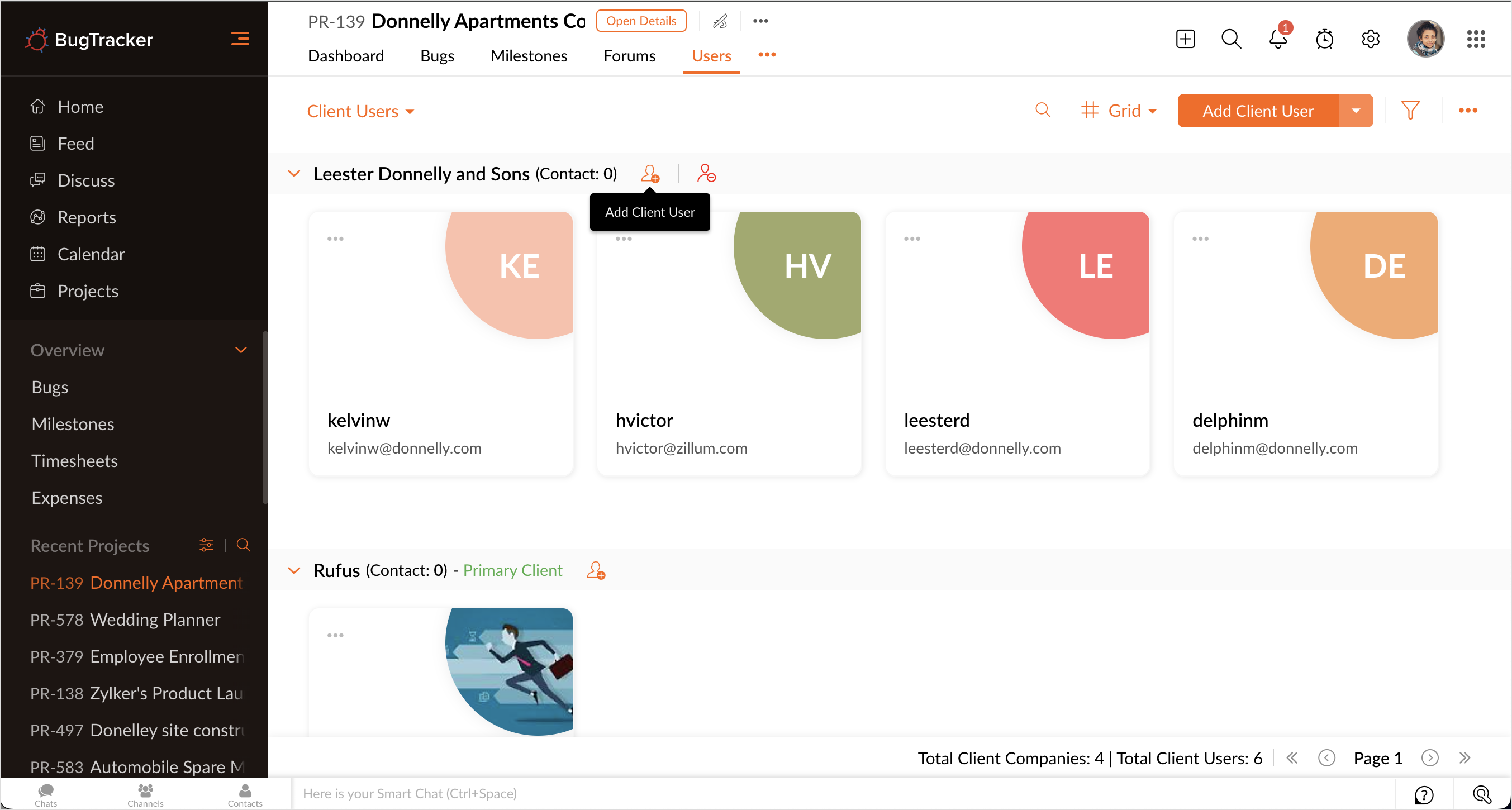Click Add Client User in the upper-right corner to add client users to the client company.