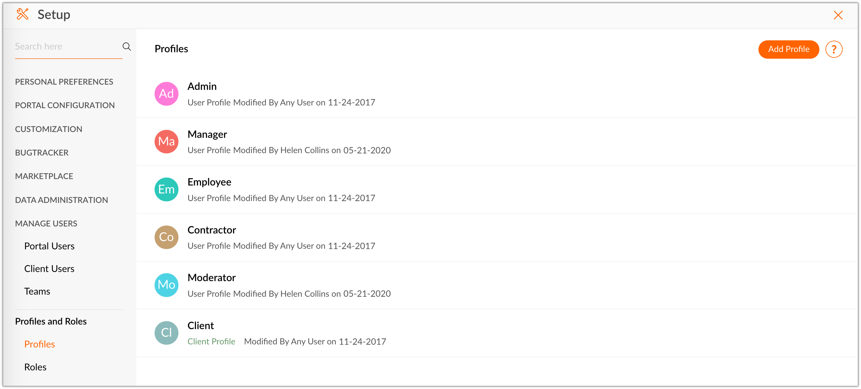 Users perform different functions based on organization’s structure and their individual designations. While some users can perform all the actions in a portal and see all critical project information, some need only limited access. Using Profiles and Roles in Zoho BugTracker, you can customize access privileges and the user’s role in the organization.