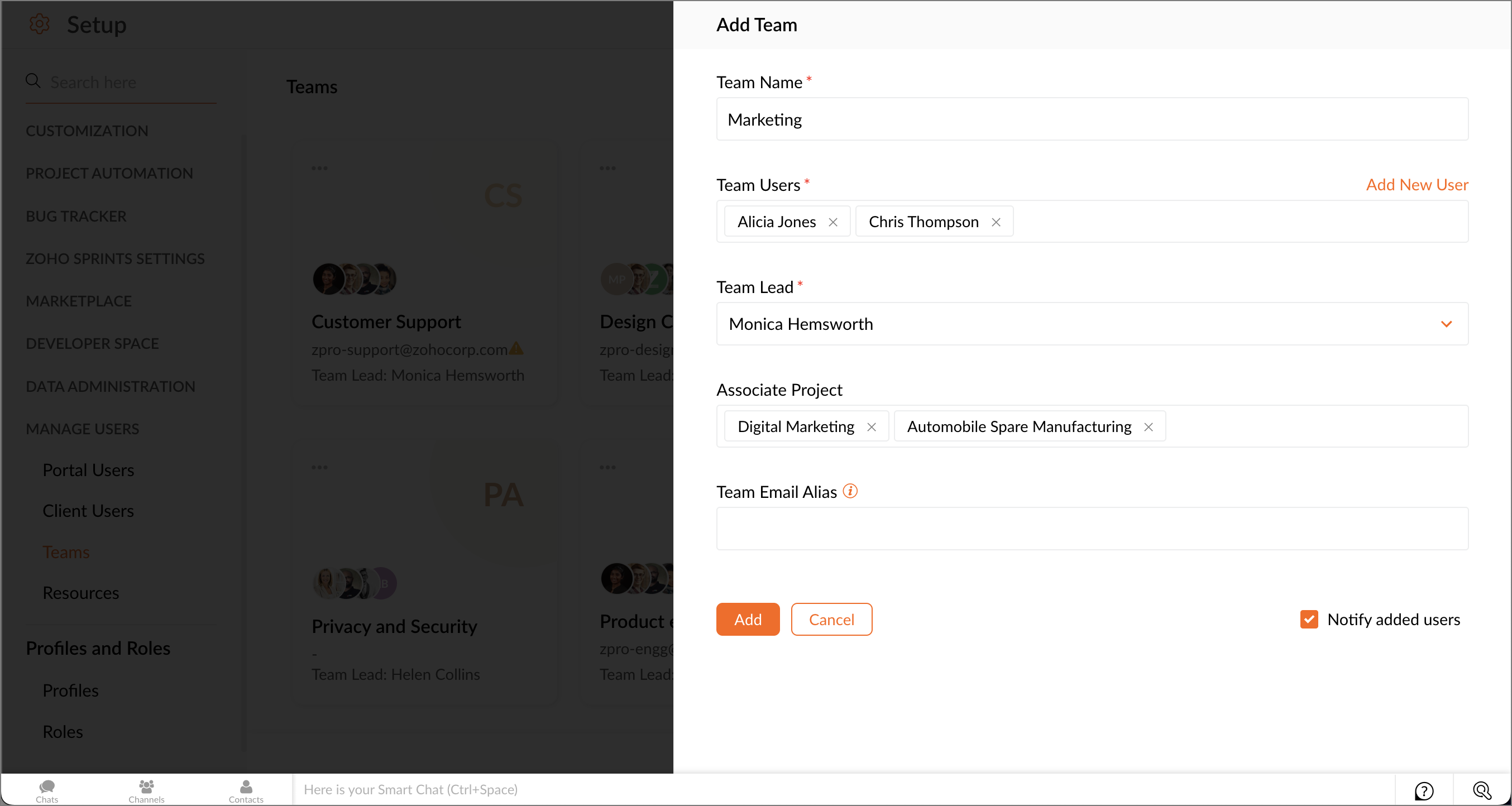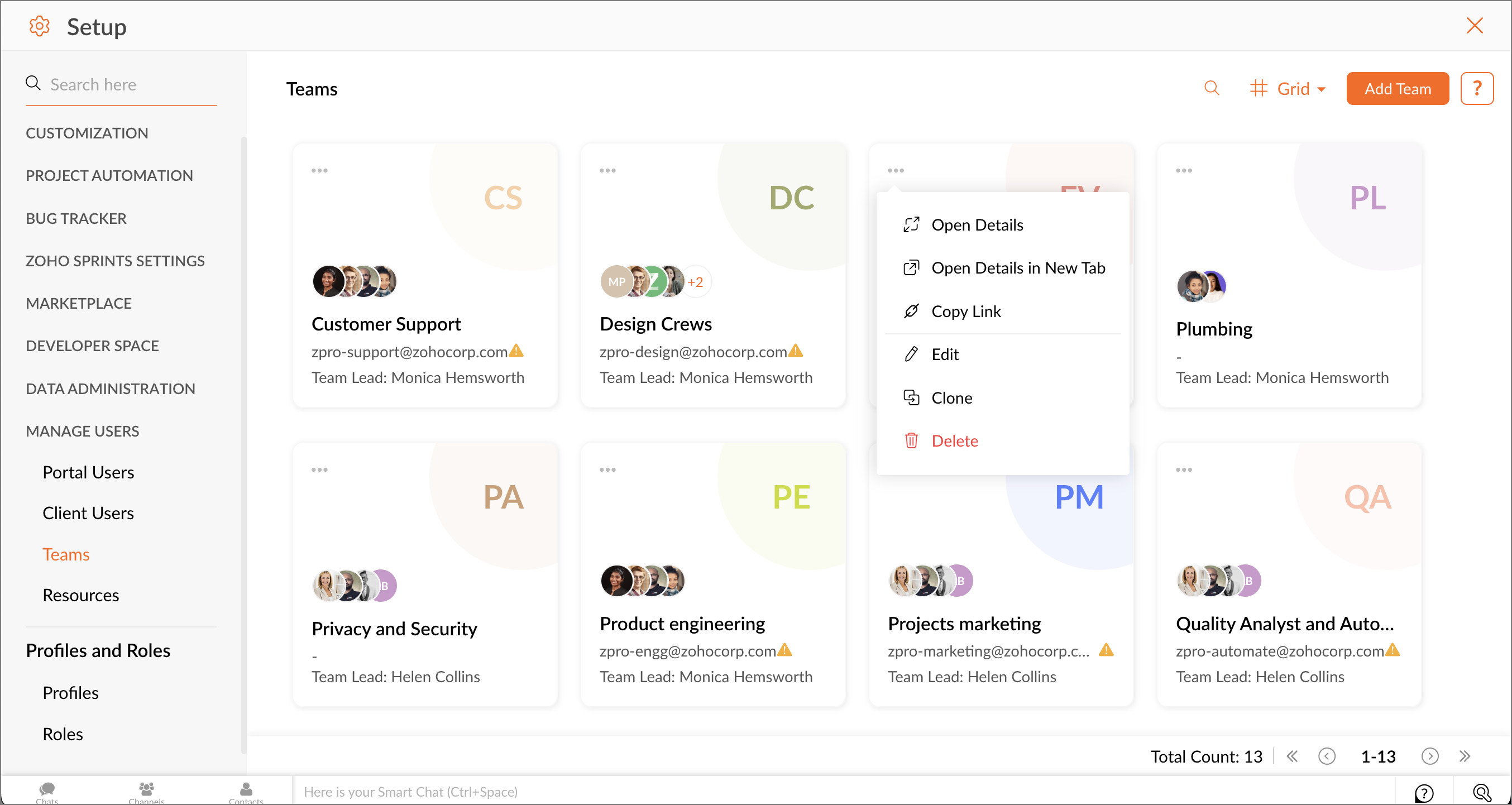 Once the team is created, it is important to manage the team according to the project's changing preferences. You can edit, delete and clone the team based on the project requirements.