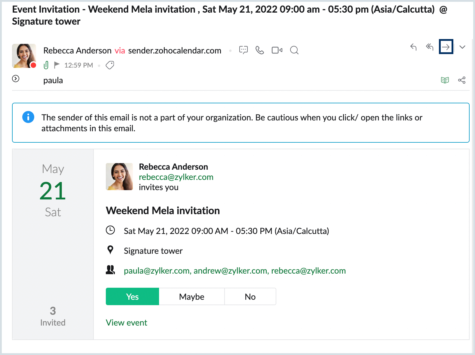 Steps to accept a forwarded invite in Zoho Mail