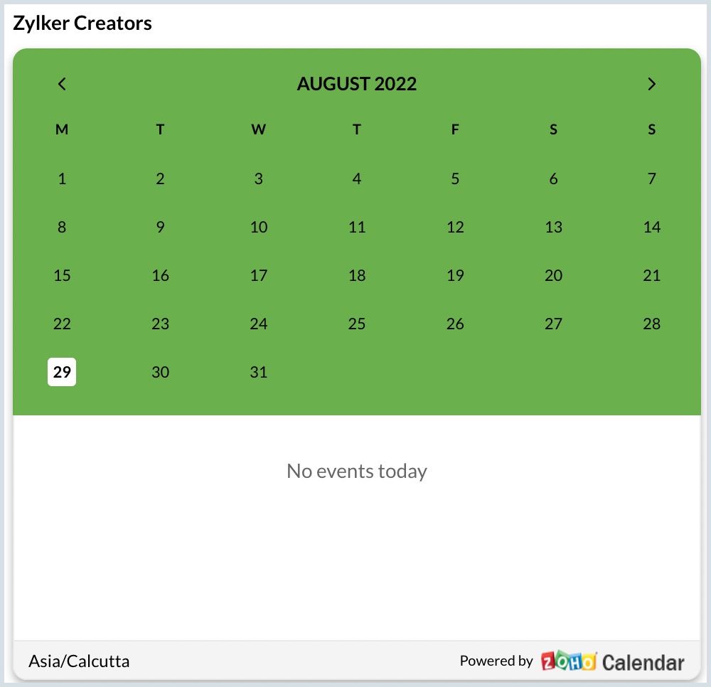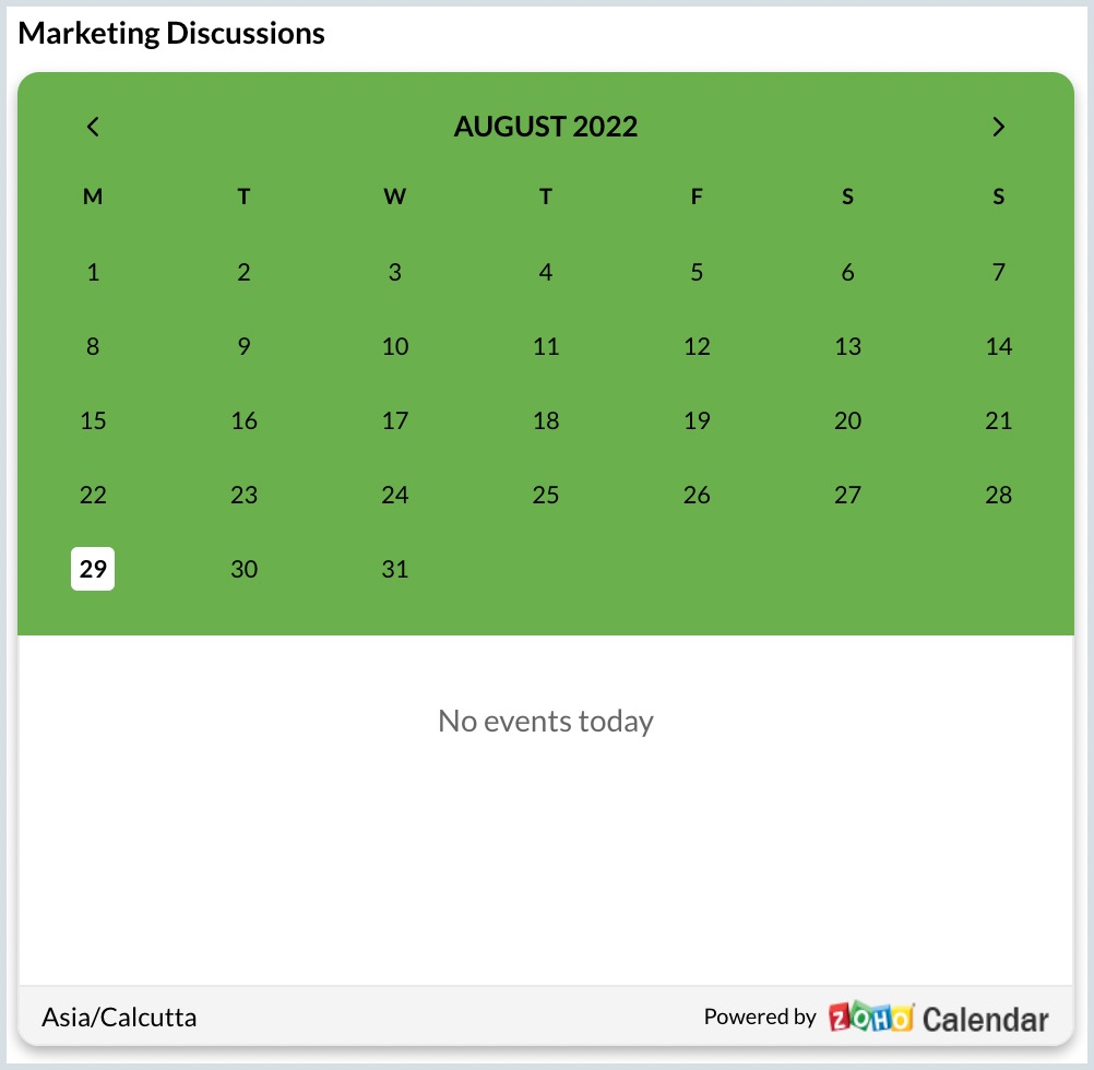 If you have a requirement to include your calendar in your blog or your webpage, you can fetch the embed code of the calendars owned by you on Zoho Calendar. This embed code can be integrated with your website's HTML code and the calendar will be added to your website. You can also embed your Zoho Calendar to your blogs if required.